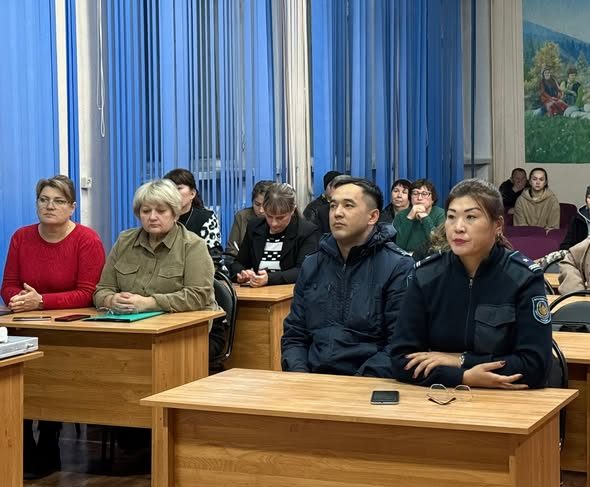 Құқық қорғау органдарының қызметкерлері «Кәмелетке толмағандар арасындағы құқық бұзушылықтардың алдын алу» тақырыбында ақпараттық-профилактикалық баяндама жасады, оның барысында ата-аналардың назарын неғұрлым жиі кездесетін бұзушылықтарға, құқыққа қайшы әрекеттер үшін жауапкершілікке, жасөспірімдердің мінез-құлқы мен бос уақытын бақылаудың маңыздылығына, сондай-ақ отбасы мен оқу орны арасындағы тығыз ынтымақтастықтың қажеттілігіне аударды.