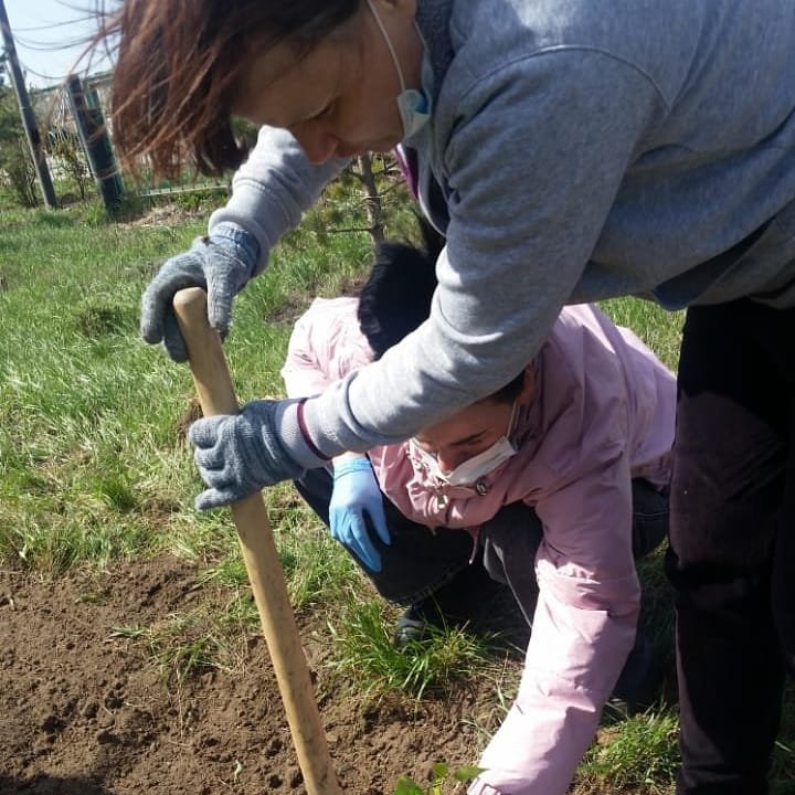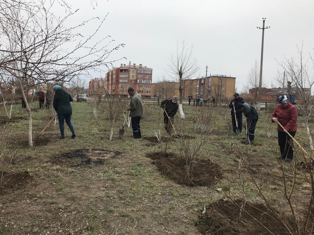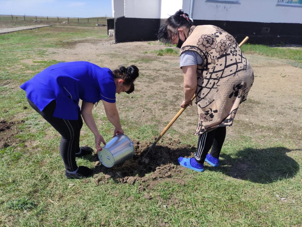 Колледж бөлімшесінде ағаш көшеттерін отырғызу