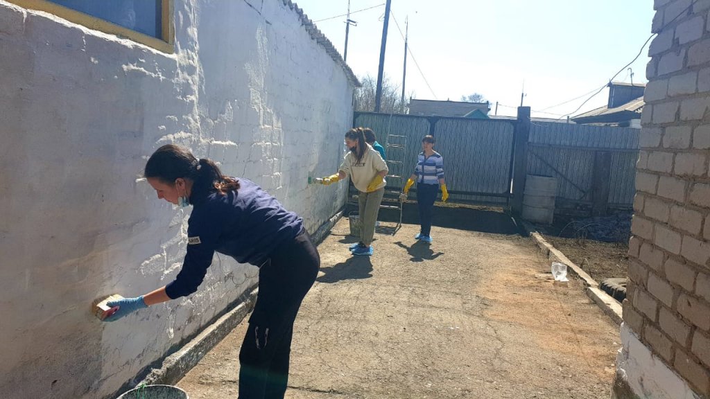 «30 ізгі істер» қоржынына. 16 сәуір күні коолдждің волонтерлары әлеуметтік педагог О.И.Белозерцеваның басшылығымен жалғызбасты зейнеткер Л.К.Барскаяға үйін ағартуға қолғабыс жасады.