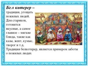 «Менің халқымның дәстүрлері». Сынып сағатын «Тамақтану» мамандығы бойынша екінші курс тобының жетекшісі Панаева Э.Д.