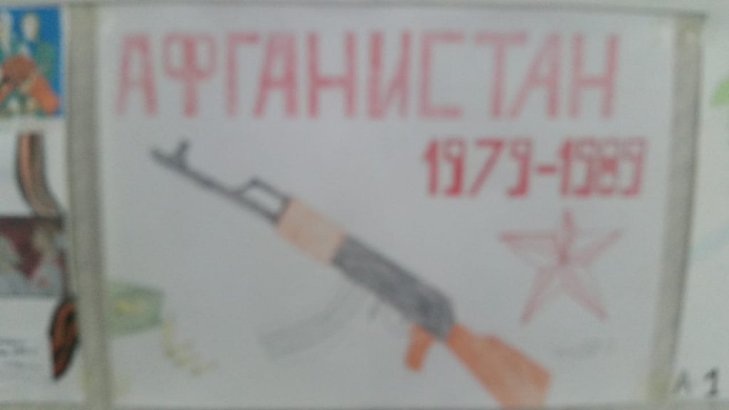 Ауғанстан жолдарынан өткен барлық жауынгер-интернационалистерді еске алу үшін «Ауған соғысы туралы біз не білеміз?» Жад аллеясы қабырға газеттері форматында.