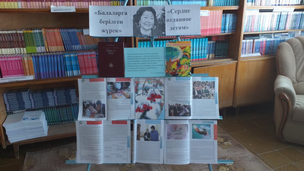 Онкүндік аясында: «Өзін-өзі тану: Махаббат пен Шығармашылық Педагогикасы», «Балаларға берілген жүрек» тақырыбында адамгершілік-рухани білім беру бағдарламасының авторы С.А.-ға арналған кітап көрмесі ұйымдастырылды. Назарбаева.
