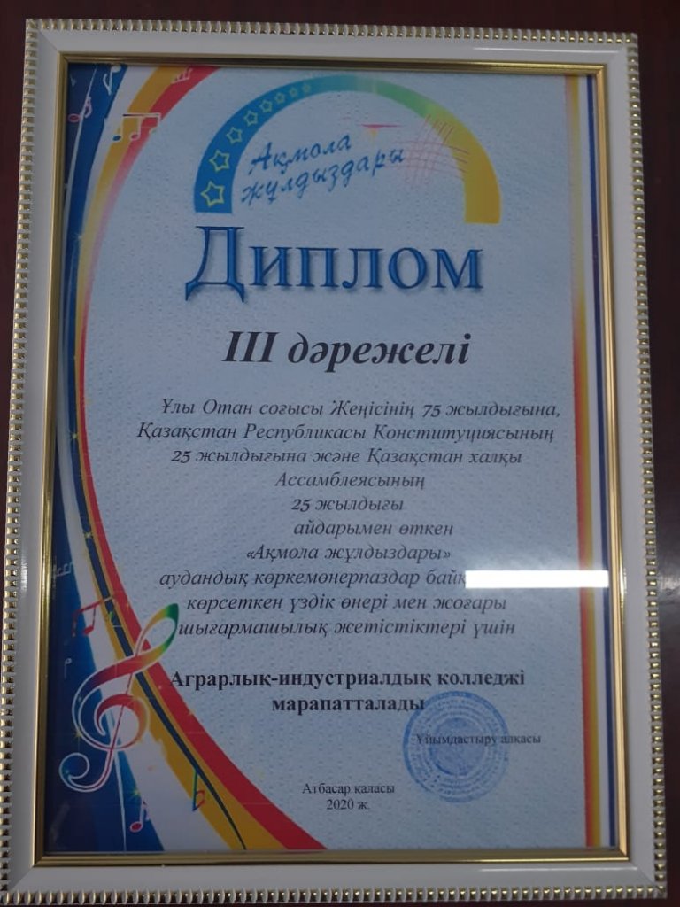 «Аграрлық-индустриалды колледж» МКҚК 3 дәрежелі дипломмен марапатталды.