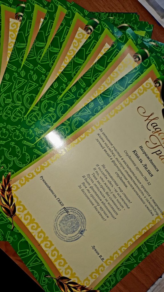 «Самғау» Республикалық инновациялық орталағының дипломдарымен жүлделі орындарға ие болған МКҚК «Атбасар қаласы, Аграрлы-индустриялық колледжінің» П-4 тобының 1 курс студенті Володина Елизавета «Көркем жазу» номинациясы бойынша 1 орын, ЭВМ-5 тобының 1...