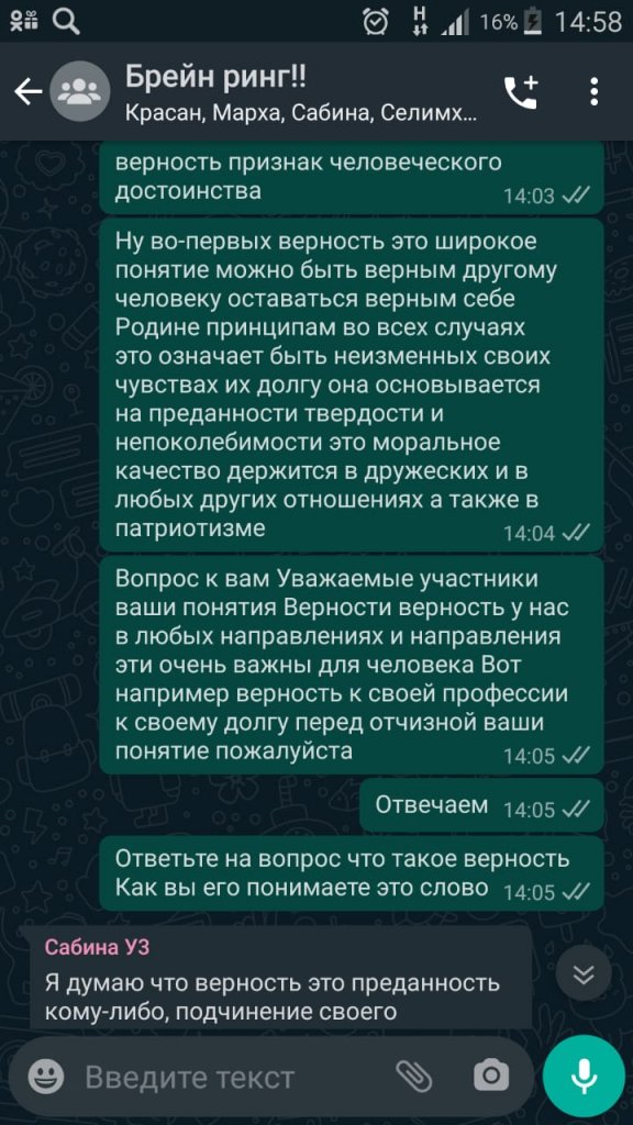 22 мамыр күні "АИК" МКҚК "Саналы ұрпақ" клубының белсенділерінің қатысуымен "Адалдық-адамның белгісі" тақырыбында онлайн брейн-ринг өткізілді.