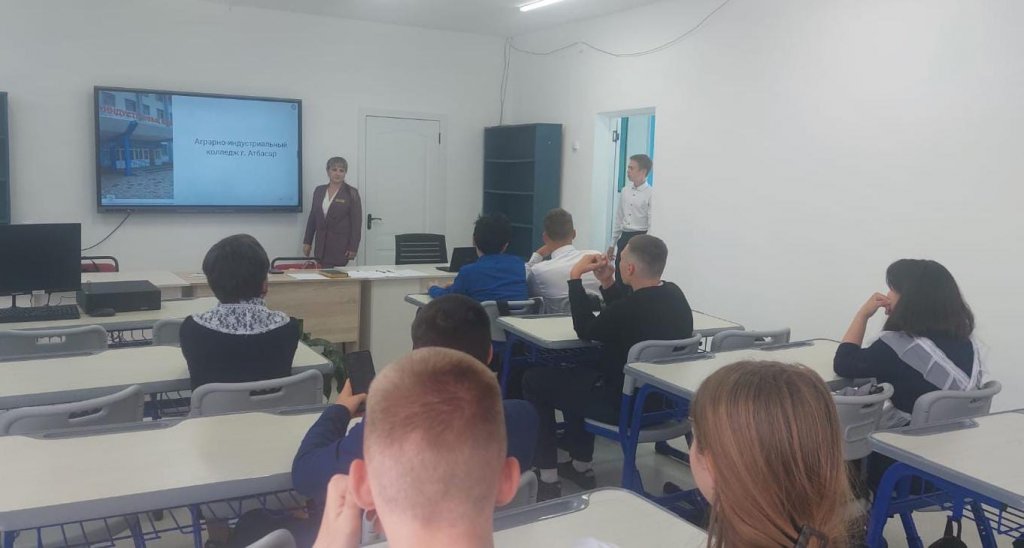 Колледж қызметкерлері Атбасар ауданының Тельман ауылы мектебінің 9-11 сыныптарының оқушыларымен көшпелі кәсіби бейімдеу кездесу өткізді.