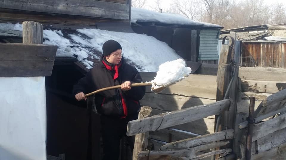 Біздің колледждің волонтерлері. Зейнеткерлерге көмек.