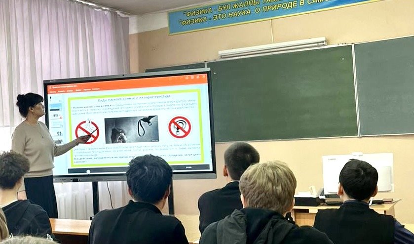 Ағымдағы жылдың 9 ақпанында М-5 тобында «Жеке бас бостандығына құқық, құқықтық негіздер және зорлық-зомбылыққа, қудалауға және некеге мәжбүрлеуге қатысты жауапкершілік» тақырыбында сынып сағаты өтті.