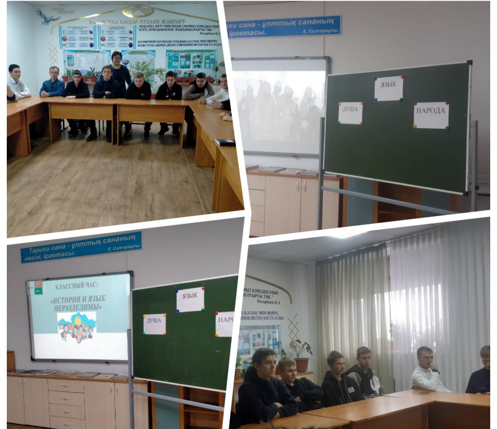 22 желтоқсан күні «Аграрлық-индустриялық колледж» МКҚК ПСД-31 тобында «Тарих мен тіл біртұтас» тақырыбында сынып сағаты өткізілді.