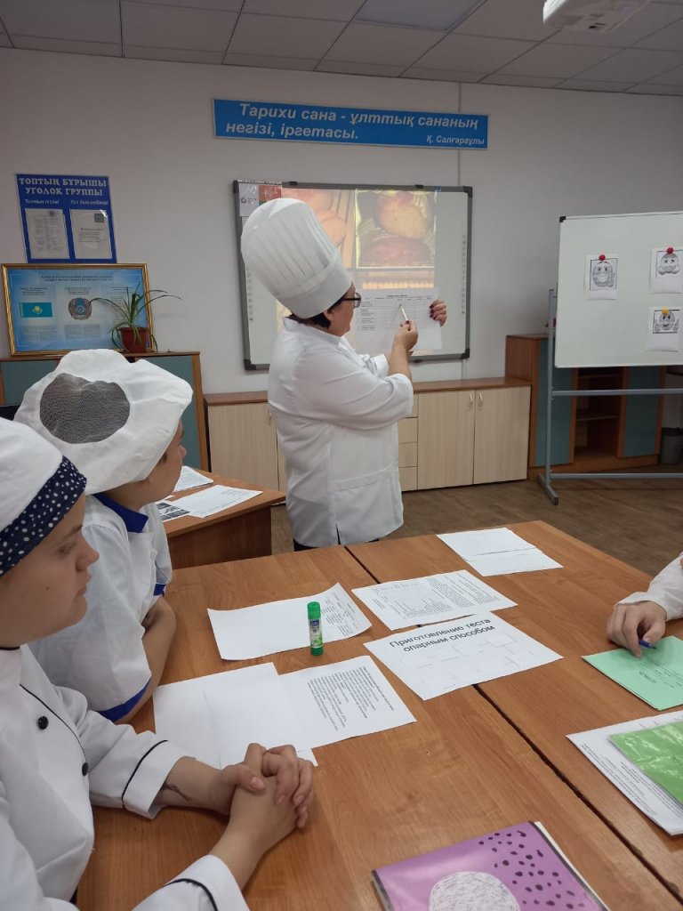 2023 жылғы 30 мамыр күні өндірістік оқыту шебері Л.А.Пшеничникова «Тамақтандыруды ұйымдастыру» мамандығының ТҰ-11 тобында өндірістік оқыту бойынша «Синабон» аспаздық бұйымын жасау» тақырыбында ашық сабақ өткізілді.