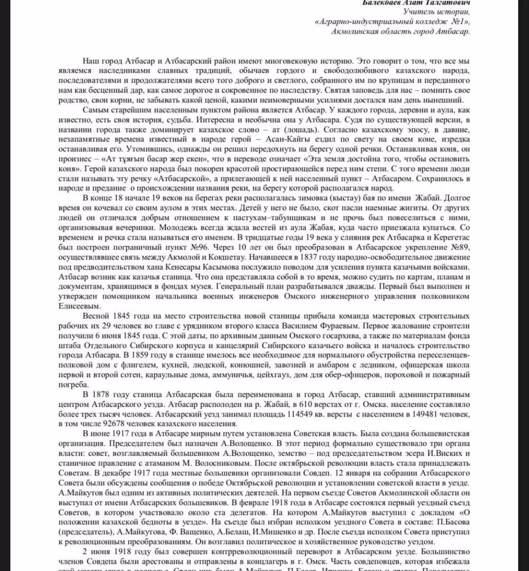 Республикалық журналдағы мақала Ы.АЛТЫНСАРИН Мұғалім: Балекбаев Азат Талғатұлы