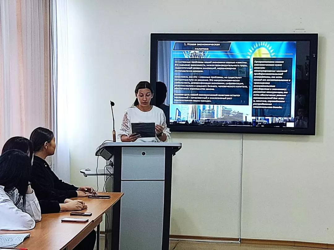 2022 жылғы 09 қыркүйек күні «Аграрлық-индустриялық колледж» студенттік парламент көшбасшысы Приходько Екетерина ЭВМ-4 тобында мемлекет басшысы К.К.Токаевтың «Әділ мемлекет. Біртұтас ұлт. Гүлденген қоғам» атты Қазақстан халқына Жолдауының ақпараттық сүйемелдеуін өткізді....