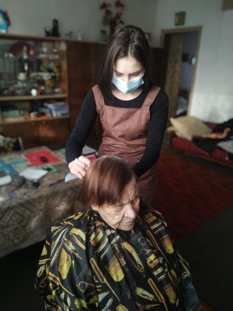 Ағымдағы жылдың 20 қаңтарында колледж еріктілері зейнеткер барская Людмила Константиновнаға барды. "Шаштараз өнері және сәндік косметика" мамандығы бойынша пп-24 тобының қыздары әжесін оның өтініші бойынша кесіп, бояды. Людмила Константиновна өте риза болды.