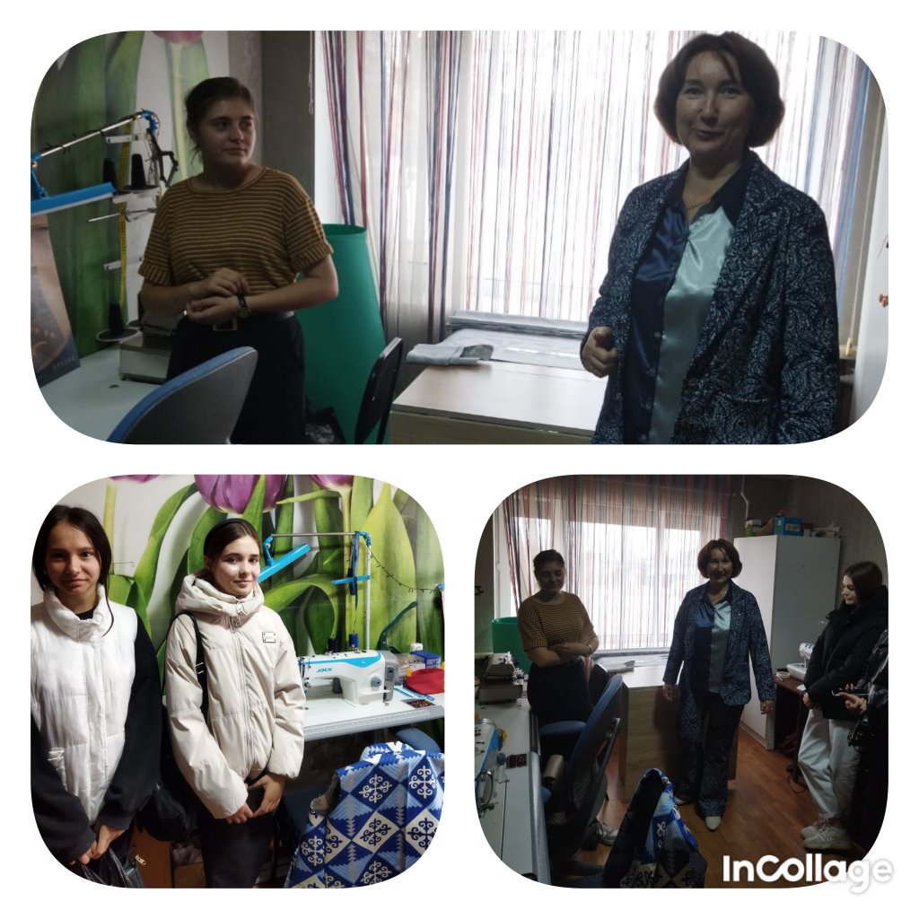 2024 жылғы 18 қазанда Атбасар ауданы Атбасар қ.аграрлық-индустриялық колледжінің МКҚК "тігін өндірісі және киімді модельдеу" У - 3 тобының бірінші курс студенттері. Студенттерді болашақ мамандықтарымен таныстыру мақсатында "періште" тігін ательесіне экскурсиямен барды. Үй иесі Елена Людмила Евгеньевна студенттерді мамандандырылған машиналар орналасқан шағын тігін цехымен, тігін және киім жөндеу шеберханасымен таныстырды. Ательедегі Экскурсия тігінші және кескіш мамандығы туралы түсінікті кеңейтті. Бұл мамандықтағы ең бастысы-шыдамдылық,табандылық, өз ісіне деген сүйіспеншілік.