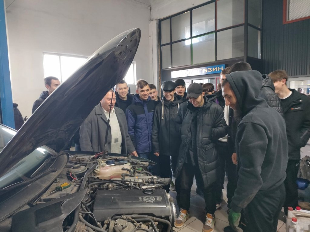 «Автомобиль көлігіне техникалық қызмет көрсету, жөндеу және пайдалану» мамандығының ерекшеліктерімен танысу үшін 2024 жылғы 18 қазан күні 1 курстың білім алушылары үшін әлеуметтік серіктес – «АТВ Motors» ЖК өндірістік алаңқайына өндірістік экскурсия жасалды. Балаларға автомобиль көлігін, тораптар мен агрегаттардыжөндеу бойынша бөлшектеу, құрастыру, процесінің ерекшеліктері көрсетілді.Экскурсияны өндірістік оқыту шеберлері Е.О.Кобзарь мен И.В.Бадло «Еңбегі адал жас өрен» жобасын жүзеге асыру аясында өткізді.