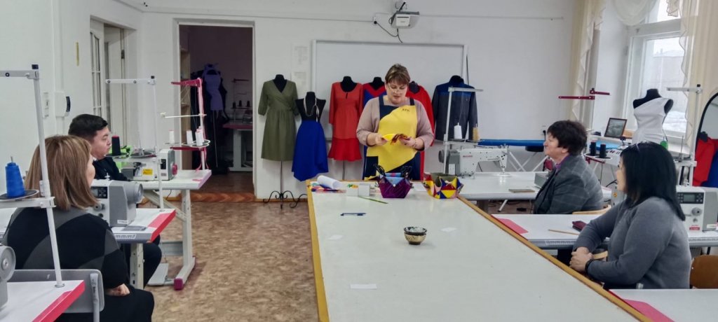 Шеберлік сынып барысында колледж қызметкерлері қолданбалы өнердің этномәдени мұрасының элементі ретінде патчворк технологияларымен танысып, осы технологиябойынша органайзерлер жасады.