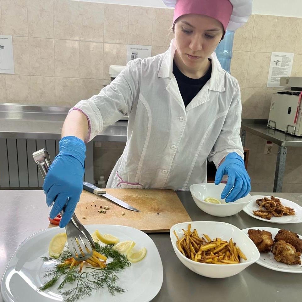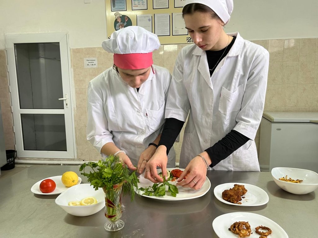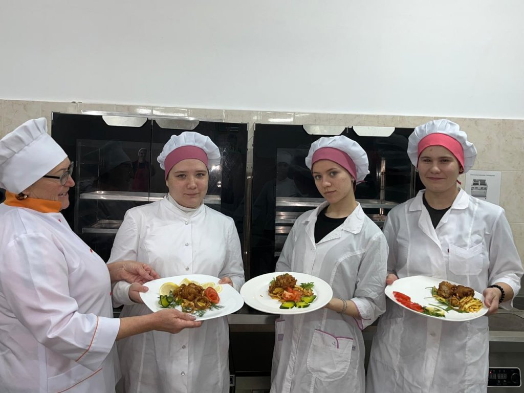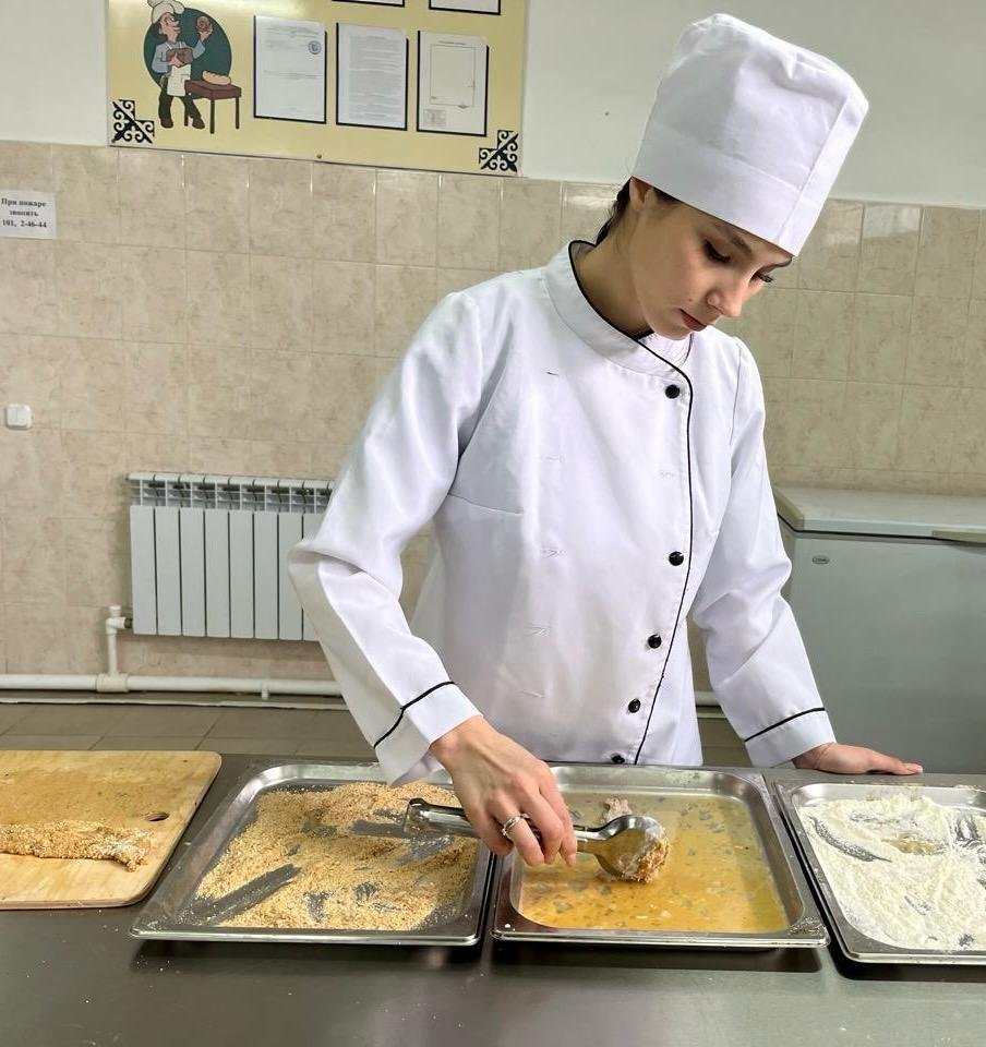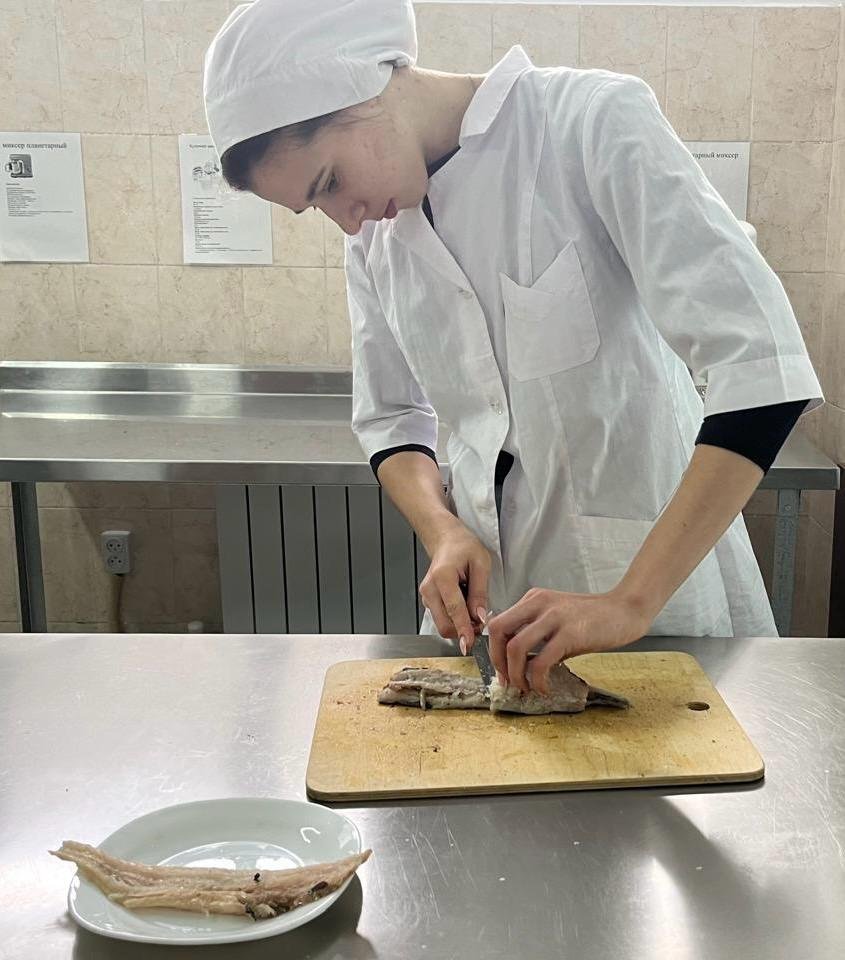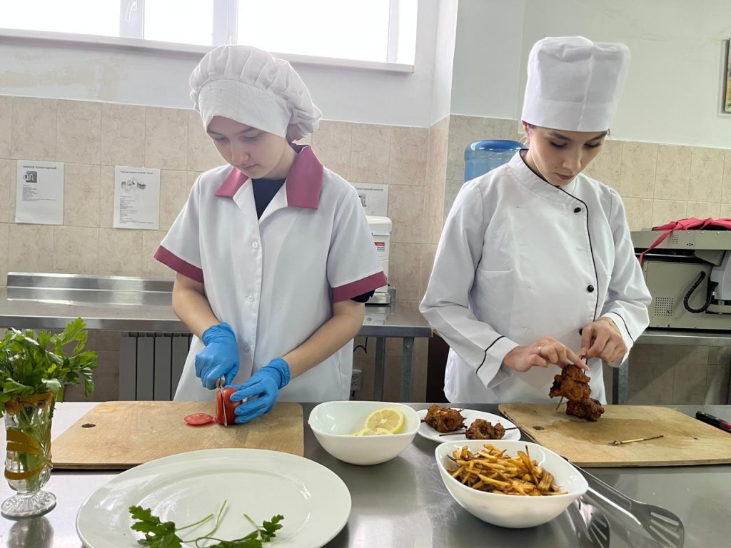Оқу практикасы аясында ОП-31 тобы өндірістік оқыту шебері Л.А. Пшеничникованың жетекшілігімен балық пен теңіз өнімдерінентаағамдар, балық сорпасынан тұздықтарды дайындау өнеріне түсті. Студенттер осы дәмді тағамдарды өңдеу мен дайындаудың әртүрлі әдістерін үйренді, сонымен қатар дәстүрлі және заманауи тағамдардың рецептерін игерді. Балықты пісіру және қуыру әдістеріне ерекше назараударылды. Оқушылар балықты дайындау әдісіне қарай қалай дұрыс таңдау керектігін, соныменқатар негізгі ингредиенттердің дәмін көрсету үшін гарнирлер мен дәмдеуіштерді қалай таңдау керектігін білді. Тәжірибе тек танымдық қана емес, сонымен қатар шабыттандырды, аспаздық шеберлікпен креативті тәсілдің дамуына ықпал етті. Студенттер жұмыс нәтижелерін ұсыну және оқытушыдан сындарлы кері байланыс алу арқылы өздерінің аспаздық дағдыларын көрсетті. Бұл тәжірибе олардың гастрономия саласындағы болашақ кәсіби қызметіне маңызды кезең болады.