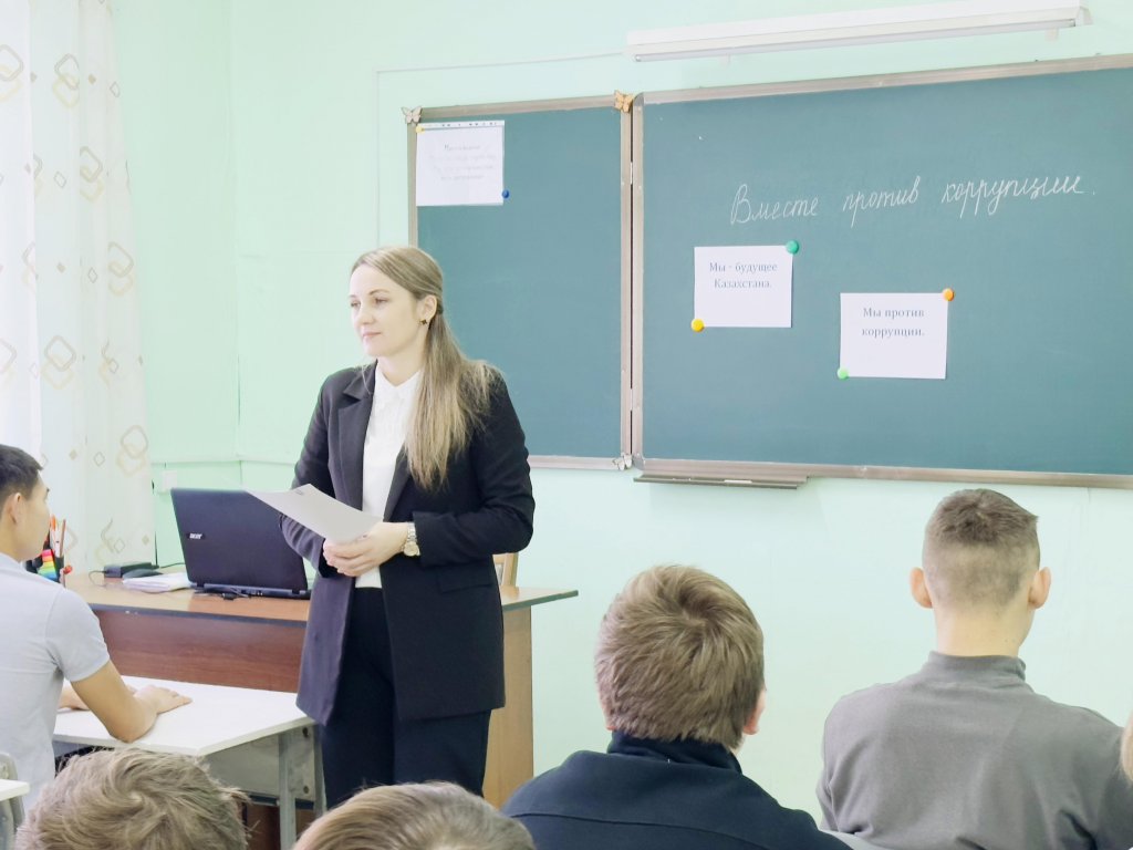 Кураторлық сағат барысында сыбайлас жемқорлық қызметінің негізгі ұғымдары қарастырылып, қазіргі қоғамдағы сыбайлас жемқорлық түрлері зерделенді. Бір жауапты таңдай отырып, жабық сұрақтармен викторина өткізілді. Білім алушылар қазіргі қоғамға қажетті сыбайласжемқорлыққа қарсы шаралар тақырыбын байыптықабылдады және викторина сұрақтарына жауаптармен қоғамдағы атикоррупциялық ережелерді сақтау бойынша шаралар ұсынды.