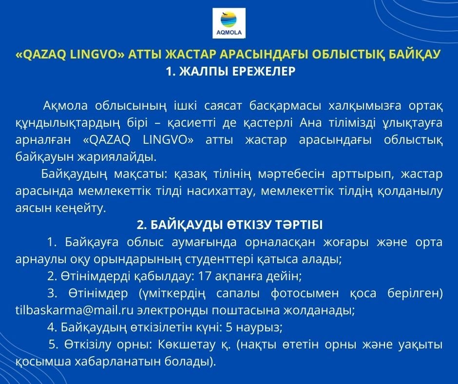 «QAZAQ LINGVO» атты жастар арасындағы облыстық байқау