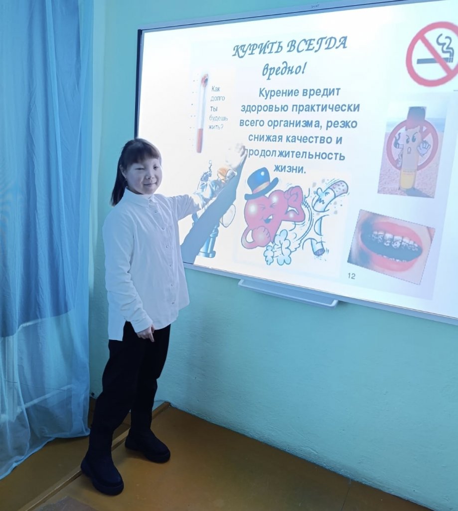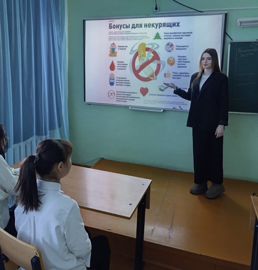 «Темекі шегідің әйелдер денсаулығына зияны» баяндамасые студент А.Косьяненко оқыды.