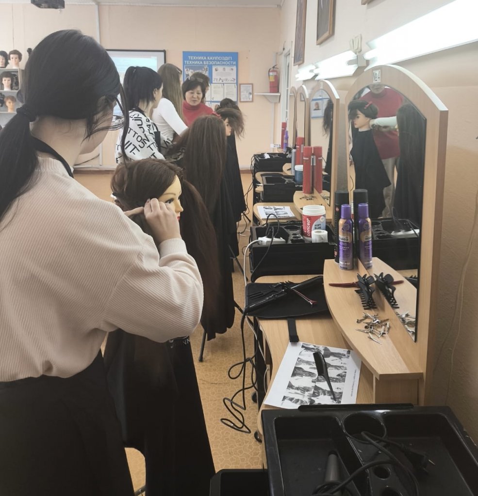 Әйелдер күні 8 наурыз қарсынанда П-24 тобында өндірістік оқыту шебері Орынбасар Каиркельдиновна Баимбетова «Шашты жатқызу – Голливуд толқыны» тақырыбында бірлескен сабақ өткізді. Сабақ манекендердің басында практикалық жаттығулармен алдын-ала теориялық дайындыққа негізделген.Білім алушылар өздерінің практикалық жұмыстарын көрсете отырып, жақсы білімдері мен дағдыларын көрсетті.