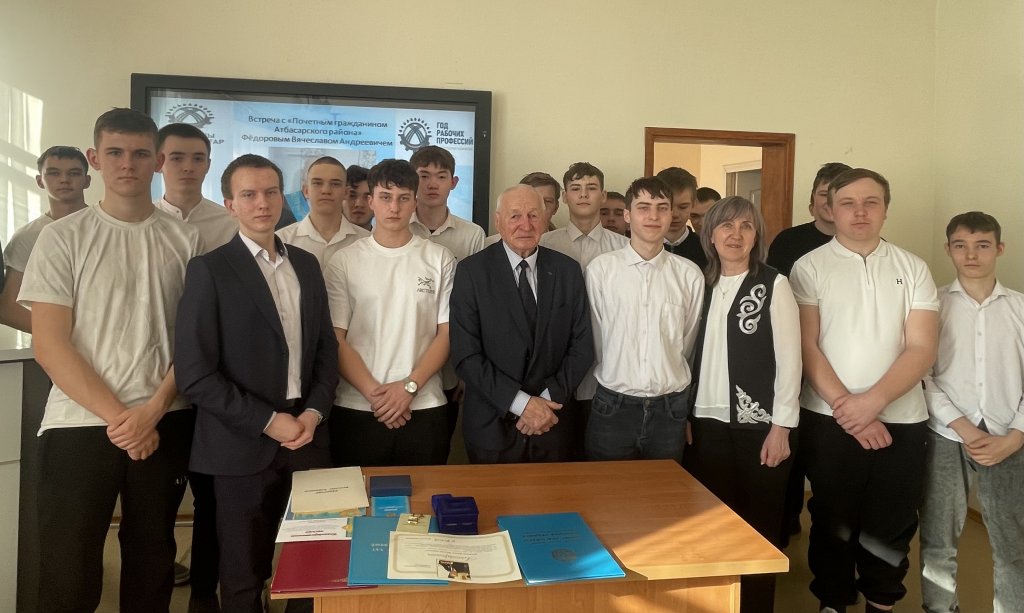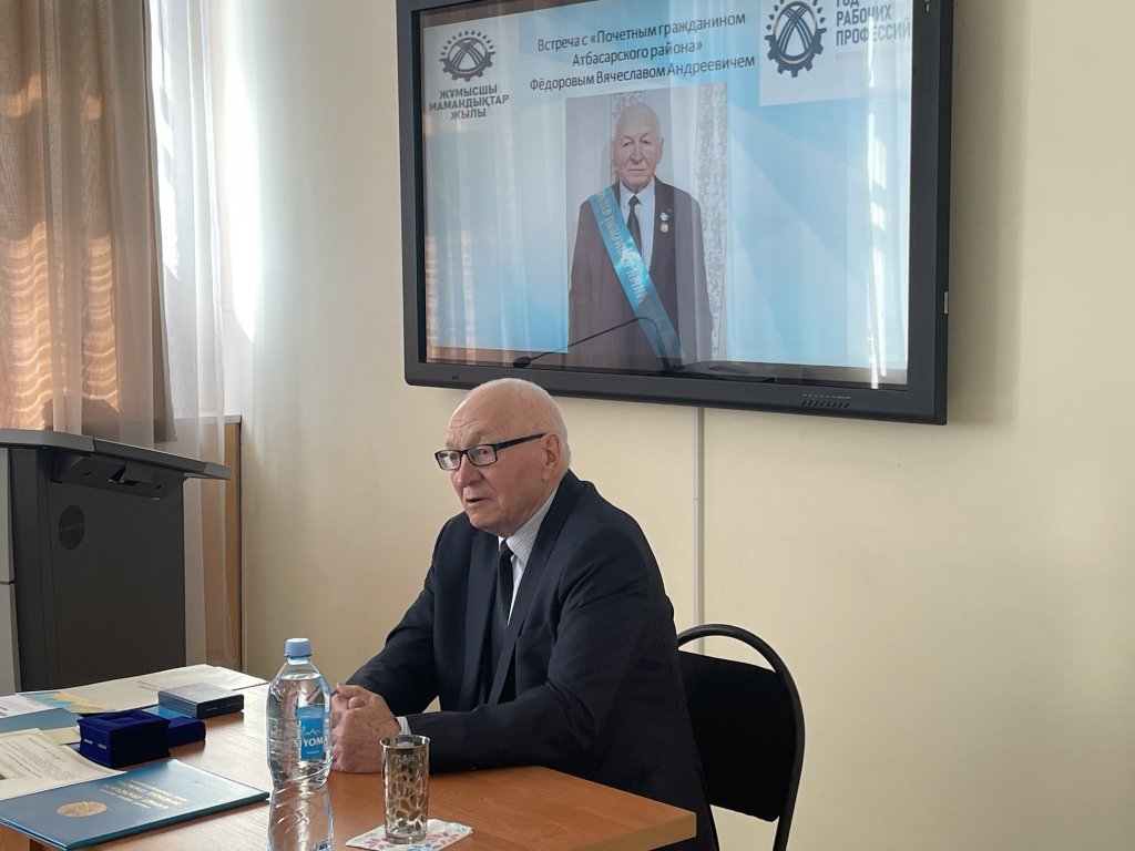Бүгін колледжде Атбасар ауданының құрметті азаматы Вячеслав Андреевич Фёдоровпен кездесу болып өтті. Вячеслав Андреевичтың қарпапайым жұмысшыдан басшылыққа дейінгі еңбек жолы 47 жылы құрайды. 1963 жылы жас жігіт Атбасар локомотив депосына слесарьдың оқушысы болып жұмысқа орналасады. Кеңес әскерінің қатарындва қызмет атқарып келгесін оқуын жалғастырып, тепловоз машинисі болып еңбек етті. Целинноград инженерлік-құрылыс институтын «Инженер-құрылысшы» біліктілігі бойынша аяқтап, құрылыс ұйымында еңбек етті. 1984 жылдан бастап, зейнеткерлікке шыққанға дейін Вячеслав Андреевич Атбасар су құбыры және кәріз басқармасының бастығы болып еңбек жолын жалғастырды. Вячеслав Андреевичтың қарапайым жұмысшыдан басшылыққа дейінгі еңбек жолы осындай.
