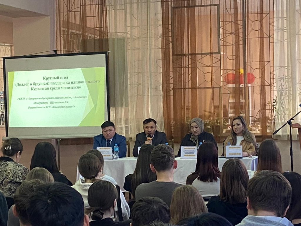 2025 жылғы 14 наурызда Бурабайда Мемлекет Басшысы Қасым-Жомарт Тоқаевтың қатысуымен Ұллтық құрылтайдың ІV отырысы болып өтті. Ел Президенті Ұлттық құрылтайға қатысушылар алдында айтқан көзқарастар бүгін этномәдени бірлестіктердің қатысуымен «Атбасар қаласы, аграрлық-индустриялық колледж» МКҚК өткізілген «Болашақ туралы диалог: жастар арасындағы ұлттық Құрылтайды қолдау» атты дөңгелек үстел кезінде қаралды. Іс-шараның модераторы «Қоғамдық келісім» КММ басшысы Куаныш Гаадатович Шакшаков болды. Ол өзінің жұмысының мақсаты қоғамдағы этносаралық келісім мен тұрақтылықты сақтау және нығайту болып табылатынын айтып, ҚХА-ның дәстүрлі емес діни ағымдардың ықпалы мәселелері бойынша жастармен жұмысының маңыздылығын атап өтті. Бұл мәселені өз сөзінде Ақмола облысы Дін істері басқармасының Конфессияаралық қатынастарды талдау және дамыту орталығының маман-дінтанушысы Манатова Сания Абаевна кеңінен атап өтті. Дүнген республикалық этномәдени орталығының жұмысы, атап айтқанда жастарды қазақстандық патриотизм рухында тәрбиелеу туралы Самира Сулманеевна Харбиева айтып берді. Техникалық және кәсіптік білім беруді трансформациялау, қоғамдағы жұмысшы кәсіптерінің беделін арттыру туралы оқу орнының басшысы Аскербек Жамантаевич Тюлебаев сөз сөйледі.Құрылтайда айтылған тағы бір маңызды мәселе спортты, әсіресе балалар мен жастар арасында танымал ету мәселесі болды. Бұл мәселемен балалар мен жасөспірімдер спорт мектебінің футбол бөлімінің аға жаттықтырушысы Владимир Петрович Шиховцев сөз сөйледі. Жалпы, дөңгелек үстелді өткізу кезінде қаралған мәселелер өзекті және жастарды профилактикалық тәрбиелеу үшін қажетті болды.