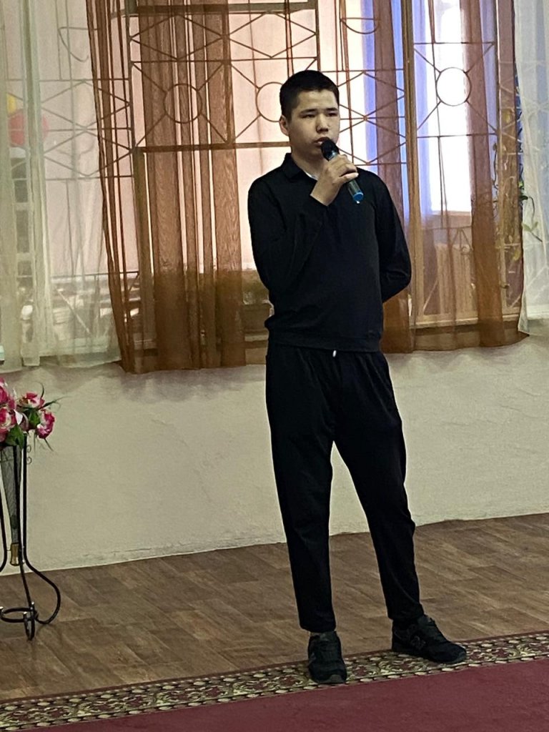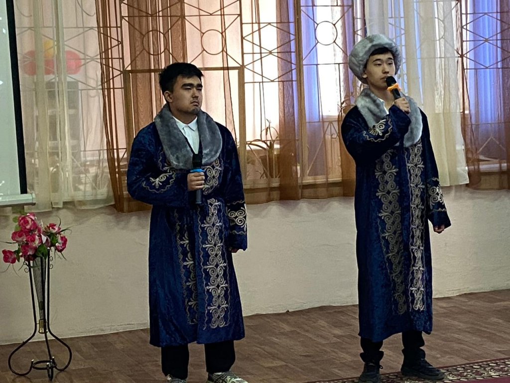 Байқауды Э-2 тобының студенттері Бапанов Алишер мен Балтабаев Мансур ашты. Олар Ораз Мұсайыпұлының «Атбасар — Сарыарқаның белді жері» атты өлеңін оқып, жүлделі үшінші орынды иеленді. Бұл өлеңнің авторы Э-2 тобының кураторы Байтугулова Айслу Оразқызының әкесі болып табылады.