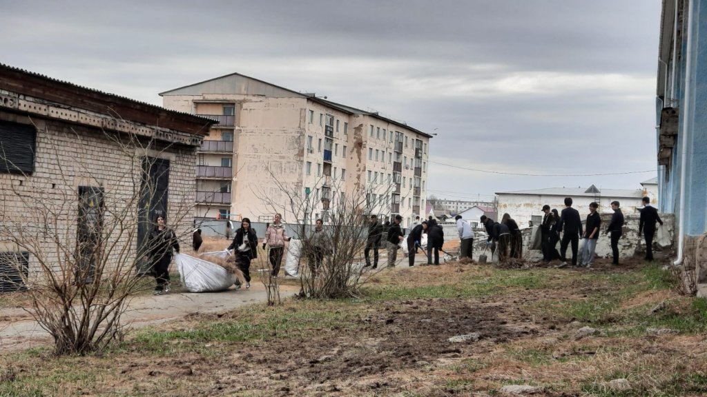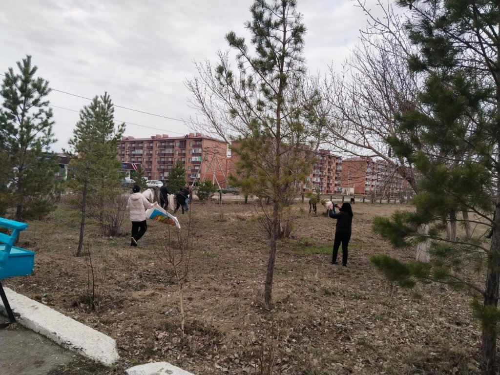 Қажетті құрал-жабдықтармен қаруланған колледж қызметкерлері аумақты ретке келтіруге қуанышты болды. Барлығы үлкен рухани көтерілумен жұмыс істеді: біреу жапырақтарды сыпырды, біреу оны үйінділерге тырмалап, біреу қаптарға салып, қоқыс жатқан жерге тастады.