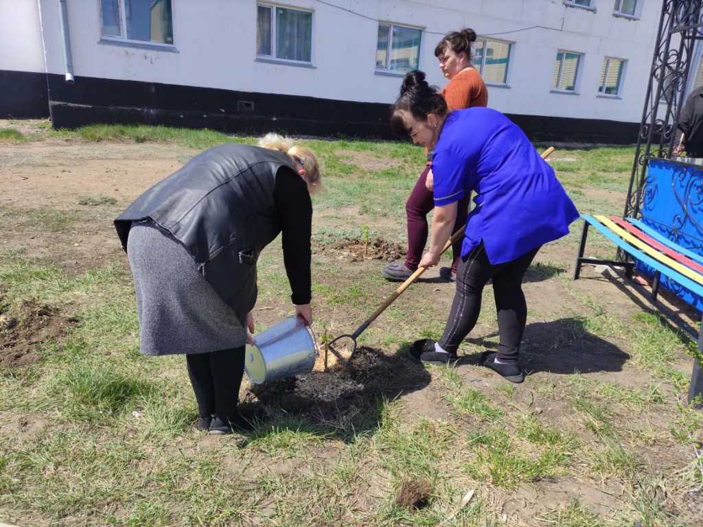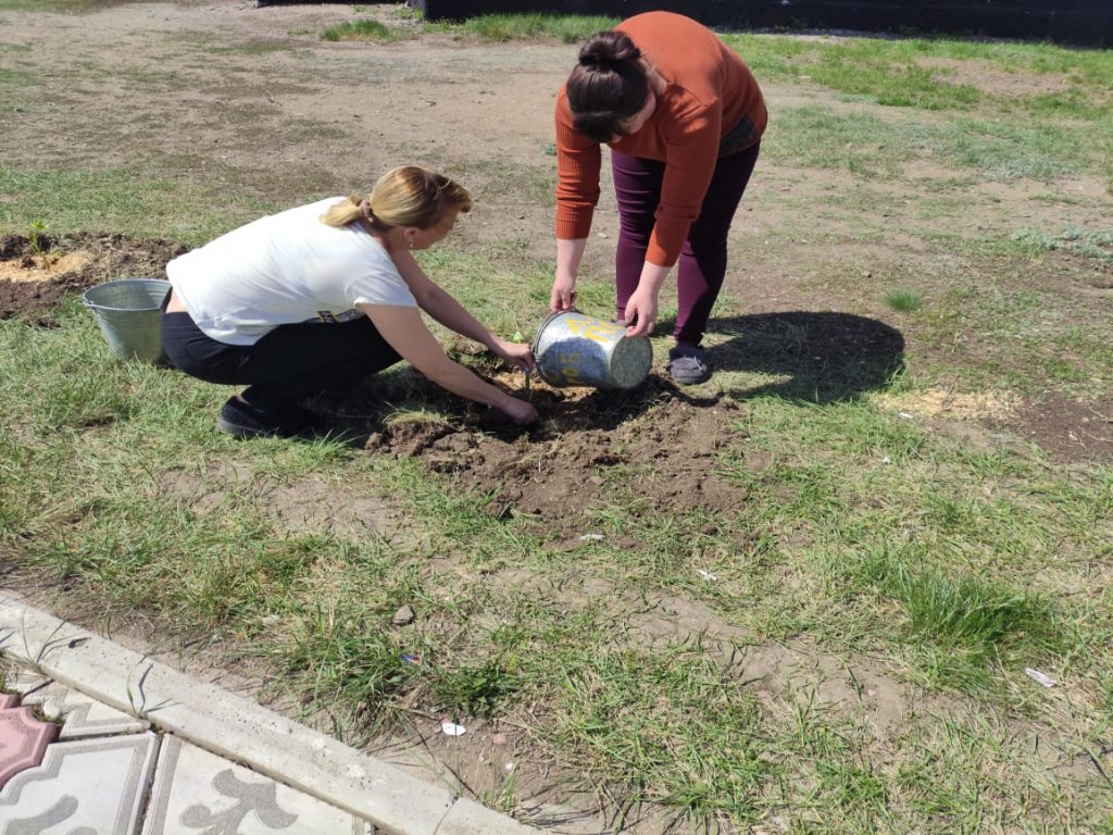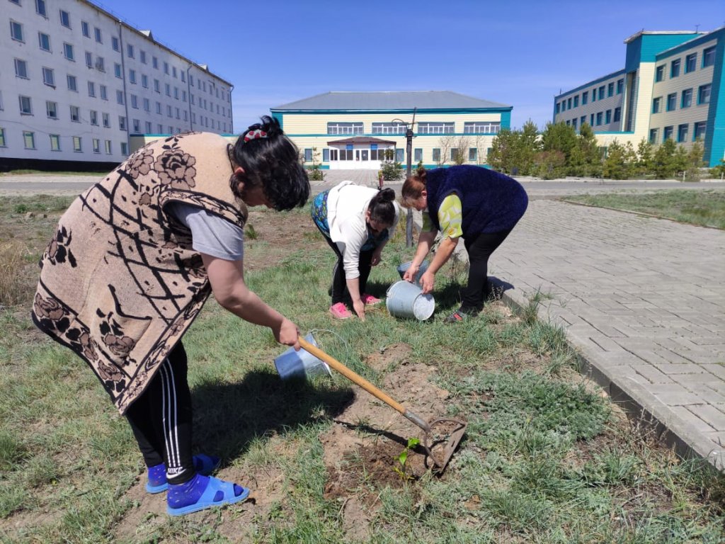 Колледж бөлімшесінде ағаш көшеттерін отырғызу