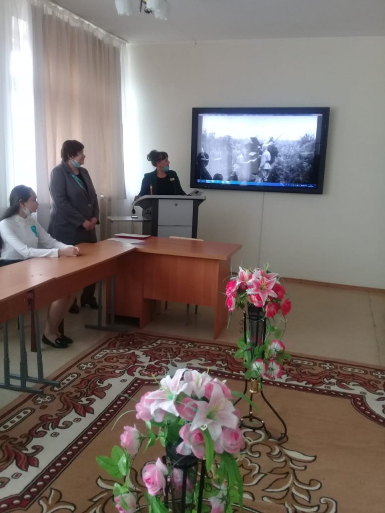 Балалар ақындардың өлеңдерін оқып, әскери хроника кадрларын тамашалады. Әскери әндер орындалмай қалған жоқ. Оқытушы білім алушыларға отаншылдық сезімі мен өз Отанына деген ұлы адалдыққа негізделген соғыс жылдарындағы кеңес адамдарының ерлігін жеткізді. Іс-шара санитарлық нормалар мен әлеуметтік қашықтықты сақтай отырып, салтанатты түрде өтті. Шарамен 15 адам қамтылды.
