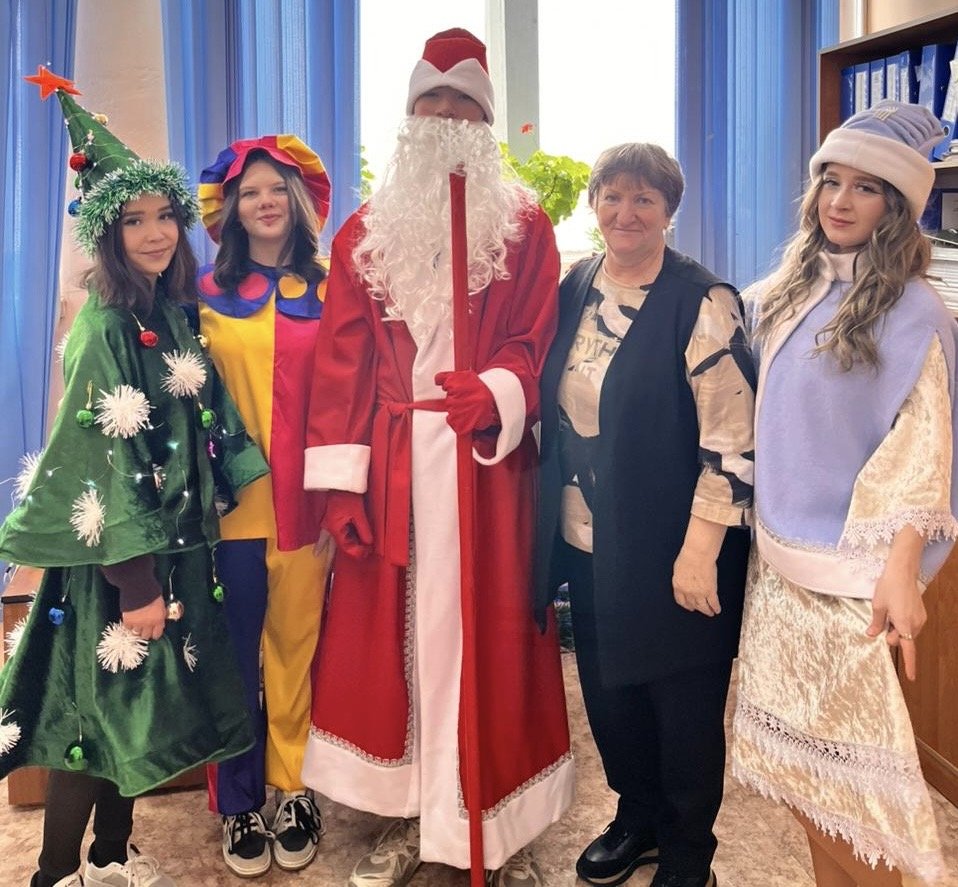 Колледждің дәліздерінде күлкі, музыка мен мерекелік әндер естіліп тұрды, өйткені студенттерді Аяз Ата – Дружин Тимофей (Т-6), Қарша Қыз – Старушенкова Злата (П-24), Шырша – Плетнёва Камила (У-23), көңілді Клоун – Мальцева Валентина (М-5), музыкалық сүйемелдеу – Амангельдинров Темерлан (Т-36) және мобилограф – Массон Софья (П-4) қарсы алды.