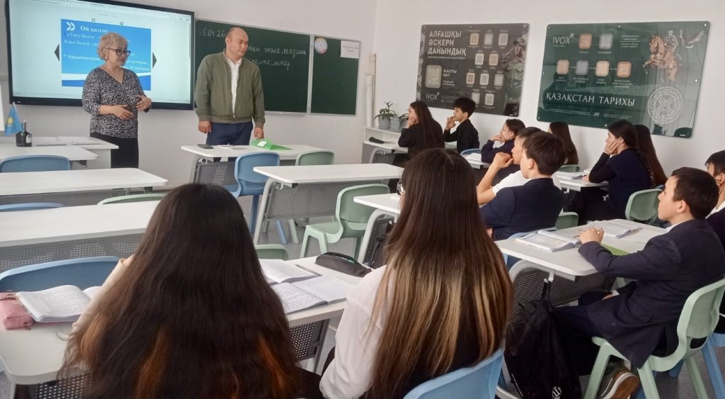 Кәсіптік бағдар беру кездесуіне мектептің 9 сынып оқушылары, сынып жетекшілері қатысты.