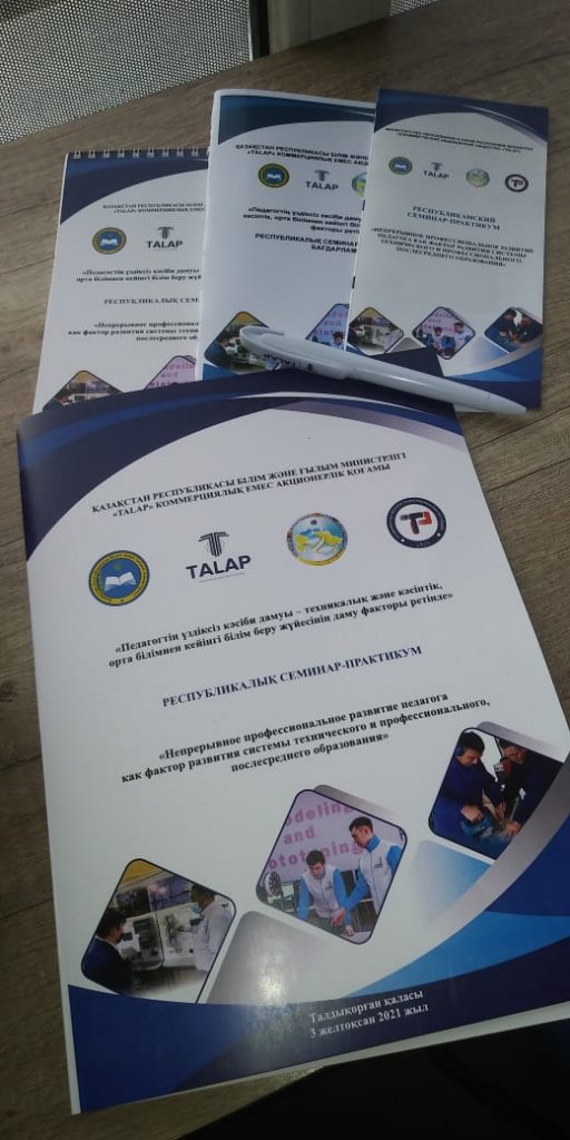 3 желтоқсан күні Талдықорған қаласында «Педагогтің үздіксіз кәсіптік дамуы техникалық және кәсіптік орта білімнен кейінгі даму жүйесін дамыту факторы ретінде» тақырыбында республикалық семинар-практикум өткізілді. Ақмола облысы тобының құрамында арнайы пәндер оқытушысы Баимбетов А.И. болды