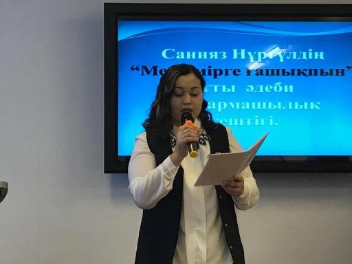 2018 жылдың 14 желтоқсанында "АИК" - те Қ5азақ тілі мен әдебиеті пәнінің оқытушысы Санияз Нұргүл жер мен халыққа арналған "Мен бұл өмірге ғашықпын" атты іс-шара өткізді. Іс-шараға қонақтар шақырылды: колледж директоры М.Р. Молдахметов, аудандық Өмірсерік Шайхин газетінің журналисі, ОӘБ бойынша орынбасары Т. п. Толкумбекова, бөлім бойынша орынбасары Г. А. Омарова,дир орынбасары. В. а. Зардиева, әдіскер р.н. Каппасова. Іс-шараға өз шығармаларының өлеңдері оқылып,музыкалық шығармалар орындалды. Барлығы жоғары деңгейде өтті, қонақтар күні бойы көптеген жаңа эмоциялар мен қуат алды.