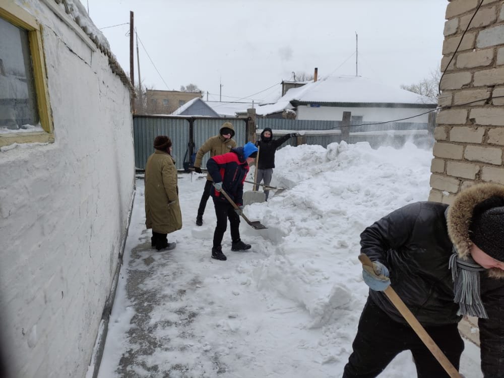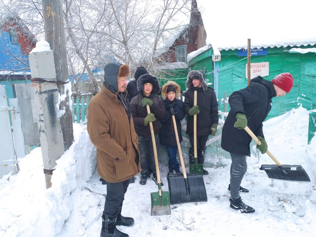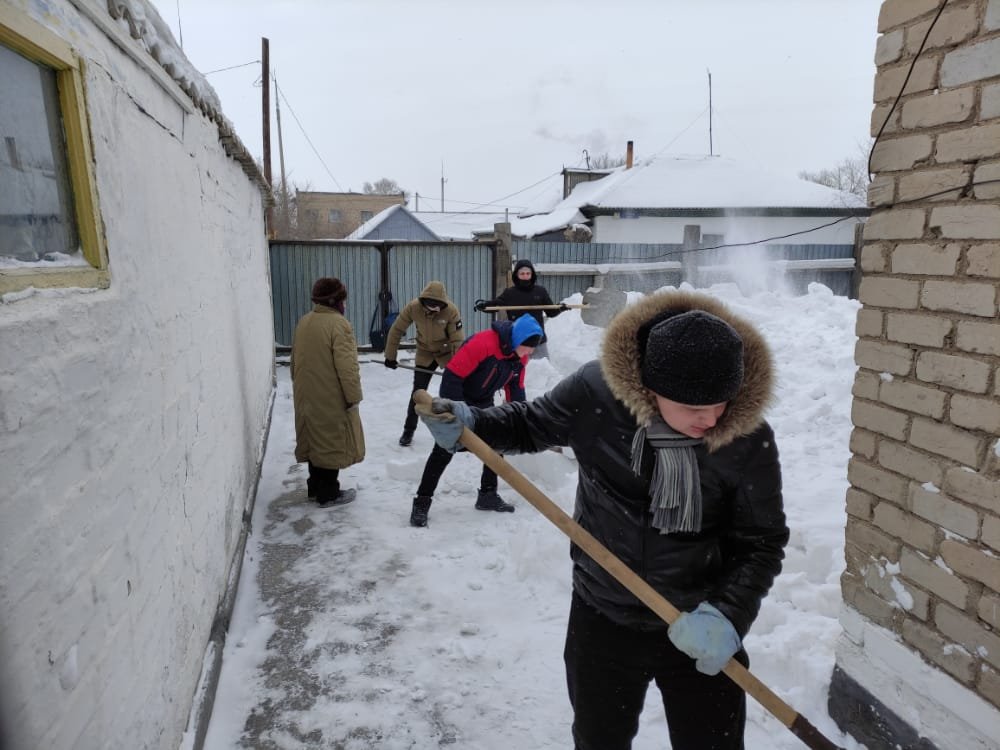 Л.К. Барскаяға және В. И. Морожниковаға үй маңындағы аумақтарды қардан тазалауға көмектесті. Балалар күрекпен қаруланып, қысқы қиындықтарды тез әрі адал орындады. Жеке үйлерде тұратын жалғыз басты қарт адамдар үшін мұндай көмек баға жетпес.