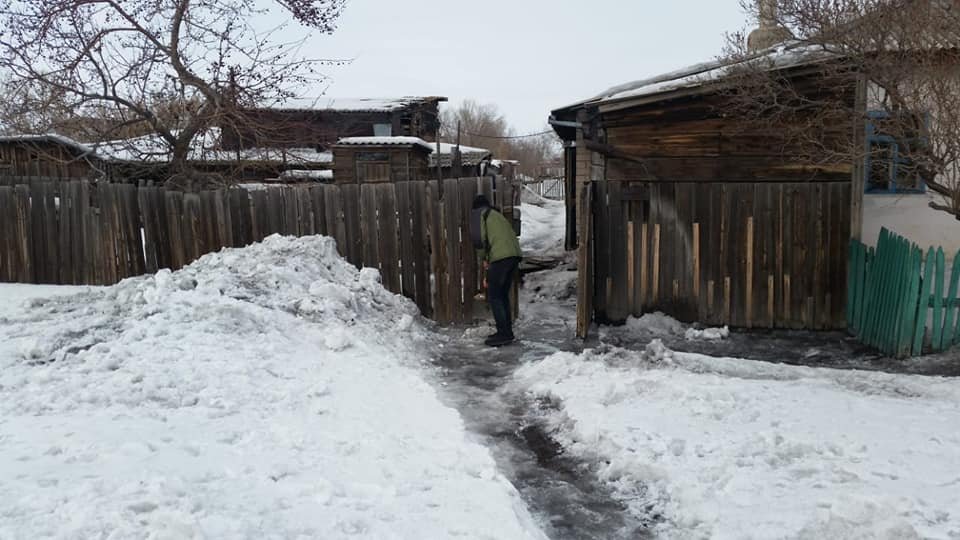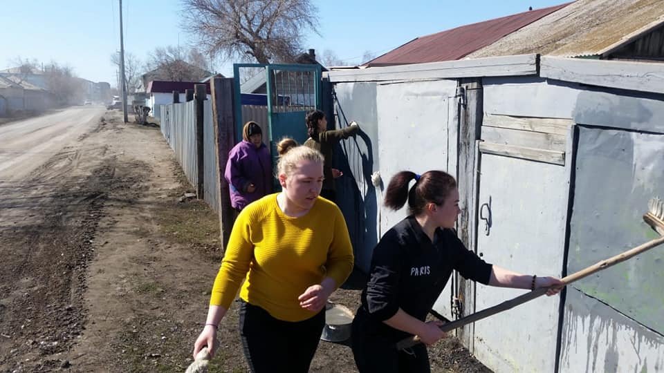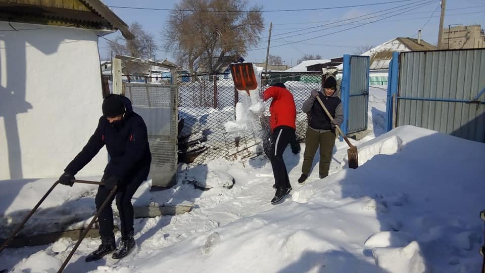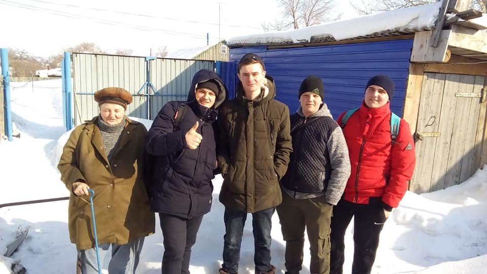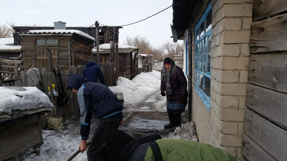 Біздің колледждің волонтерлері. Зейнеткерлерге көмек.
