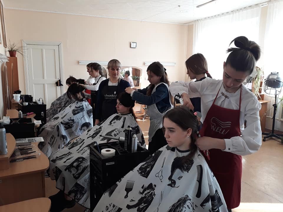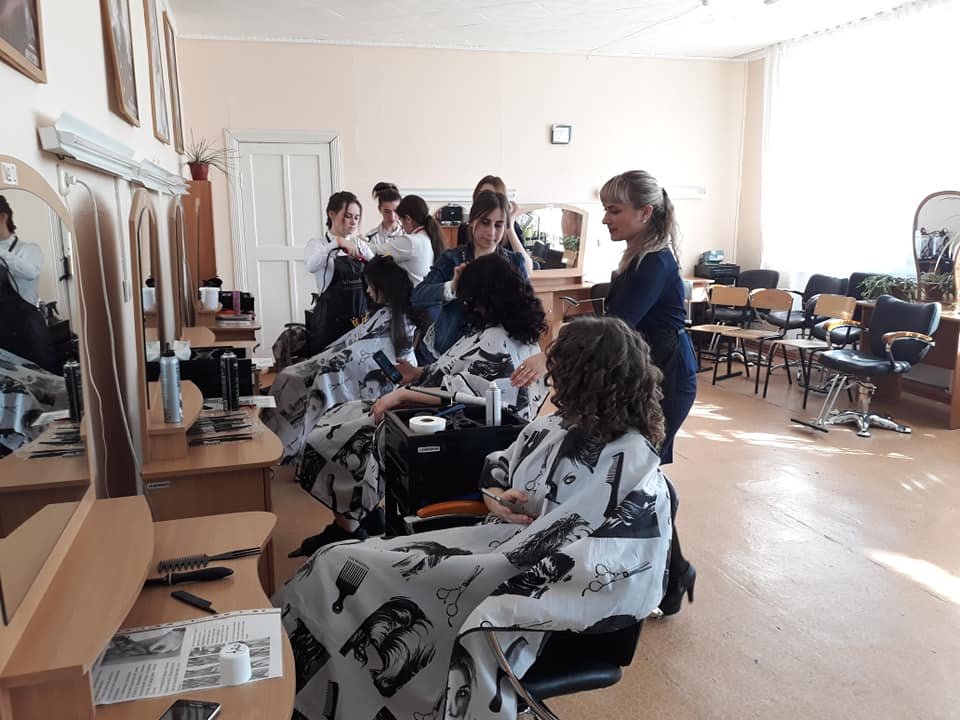 Шара тамаша ашық сабақ шаштараз. Қыздар өз шеберліктерін шаш күтімі электрощипцымен.