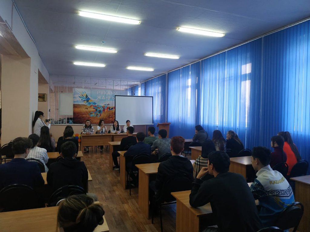 Ағымдағы жылғы 6 сәуір күні колледж кітапханасында жас кәсіпкерлердің студенттермен кездесуі болып өтті. Кездесуге ЖРО басшысы Н.А.Жакишева, жұмыспен қамту орталығының бас маманы А.Г.Мурзахметова , жас кәсіпкерлер Рыспекова Камила мен Жанниет қатысты. Шарамен 68 студент қамтылды.