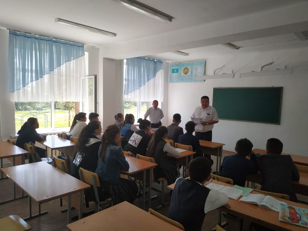16.05.2019 Кәсіптік бағдар беру тобы Жамбыл облысына, Жуалы ауданына, Дінмұхамед Қонаев атындағы 19 мектеп-гимназиясына келді.