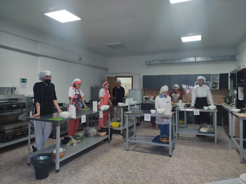 27-28 маусым күндері ТҰК-21 тобында «Аспаз» біліктілігі бойынша қорытынды емтихан өткізілді. Білім алушылар біліктілік комиссиясына суық тағамдарды, бірінші және екінші тағамдарды дайындау бойынша өз шеберліктерін көрсетті. Комиссия құрамына әлеуметтік серіктес Кусаинова Айсулу Муратовна мен бөлімше меңгерушісі Молдыбаев Талгат Султангазыевич кірді. Студенттер тағамдарды дайындау мен безендіру бойынша жақсы шеберліктері мен креатив көрсетті. Тағамдардың әртүрлігі жұмыс бағдарламасын түгел қамтыды.