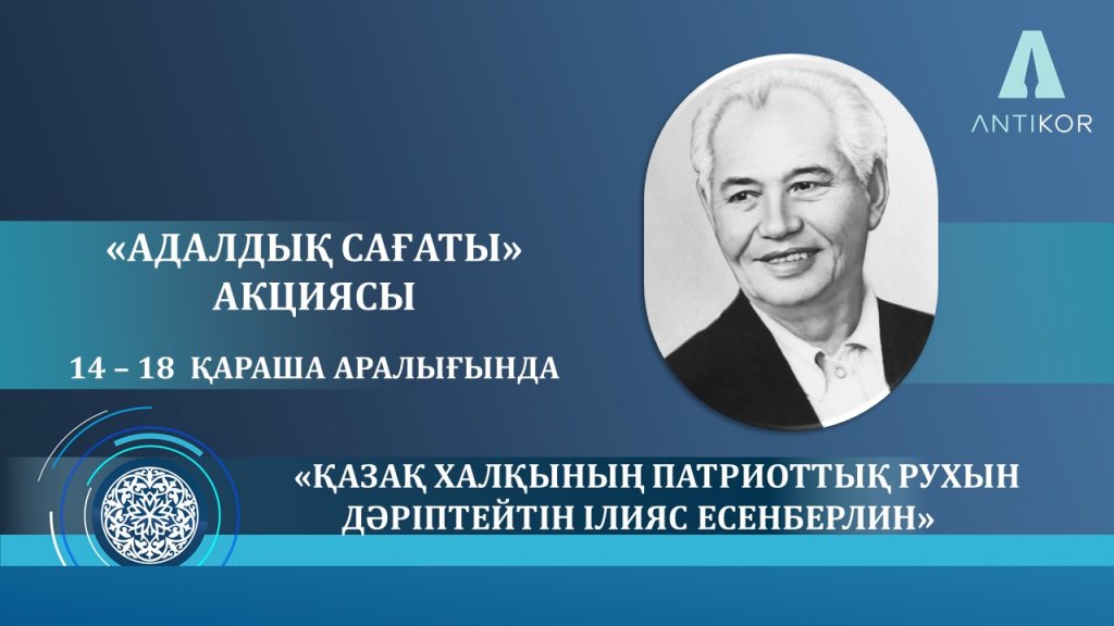 Өскелең ұрпақтың бойында ұлы тұлғалардың еңбектері арқылы парасаттылық қағидаттарын қалыптастыру мақсатында Ақмола облысы бойынша Сыбайлас жемқорлыққа қарсы іс-қимыл департаментінің бастамасымен 14-18 қараша аралығында қазақтың ұлы жазушысы Ілияс Есенберлинге арналған «Адалдық сағаты» өткізілуде.