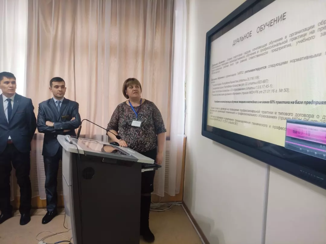 Іс-шара барысында қонақтарға біілм алушылар мен өндірістік оқыту шеберлері жұмыстарының көрмесі ұсынылды. Одан әрі іс-шара «Оқу орны және кәсіпорын - бүгінгі күннің шындығы» атты диалог алаңы түрінде жалғасты, оның барысында қатысушылар әлеуметтік әріптестермен өзара іс-қимыл және ынтымақтастық түрлерімен (дуальды оқыту, кадрларды мақсатты даярлау, шефство, оқытушылардың тағылымдамасы), «Жас маман» жобасын іске асыру нәтижелерімен, оқытушылар мен білім алушылардың шығармашылық жобаларымен танысты.