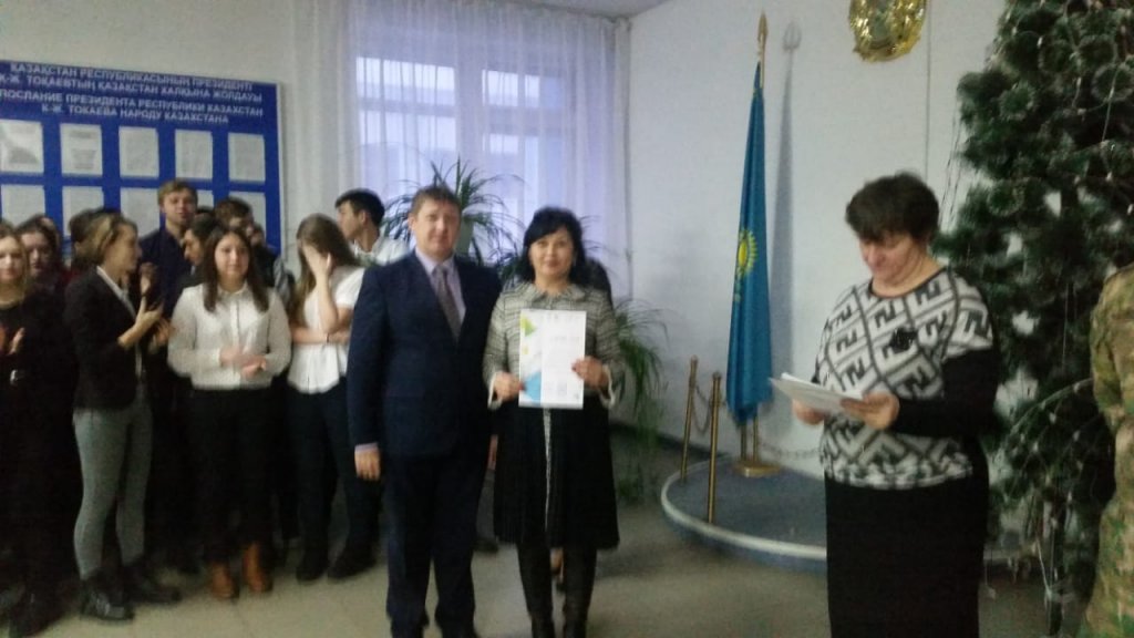 13 желтоқсан күні колледжде Қазақстан Республикасының Тәуелсіздік күніне арналған салтанатты жиын өтті. Құттықтау сөзімен колледж басшысының міндетін атқарушы В. В. Лукин сөз сөйледі. Мереке қарсаңында колледждің студенттік қауымдастығының президенттігіне сайлау өткізілді. 9 үміткердің ішінен ең көп дауыс жинаған Э-22 тобының студенті Кенжебеков Алишер. Оған колледж Президентінің куәлігі мен төс белгісі табыс етілді. Сонымен қатар, белсенді студенттер де назардан тыс қалған жоқ. Дарья Проскурина, Олешко Алина, Ф-25 тобының студенттері, Гужева Виктория, Имани Сигаури, ЭВМ-5 тобының студенттері математика пәнінен Ломоносов атындағы Республикалық ұлттық олимпиадада екінші орын алғаны үшін дипломдармен және сертификаттармен марапатталды. Ломоносов атындағы Республикалық Ұлттық олимпиадаға қатысушыларды дайындағаны үшін математика пәнінің мұғалімдері Байтугулова Айсулу Оразовна және Омарова Гүлден Ахметжанқызы грамоталармен марапатталды.