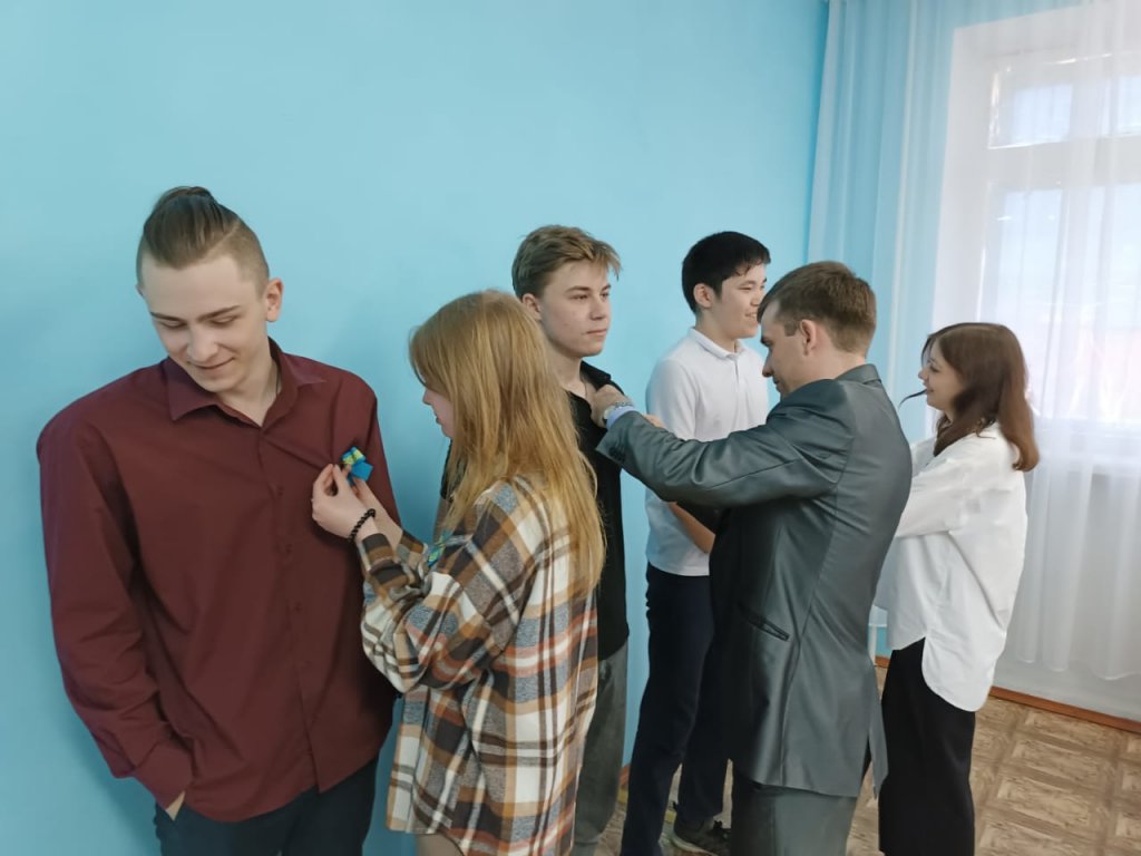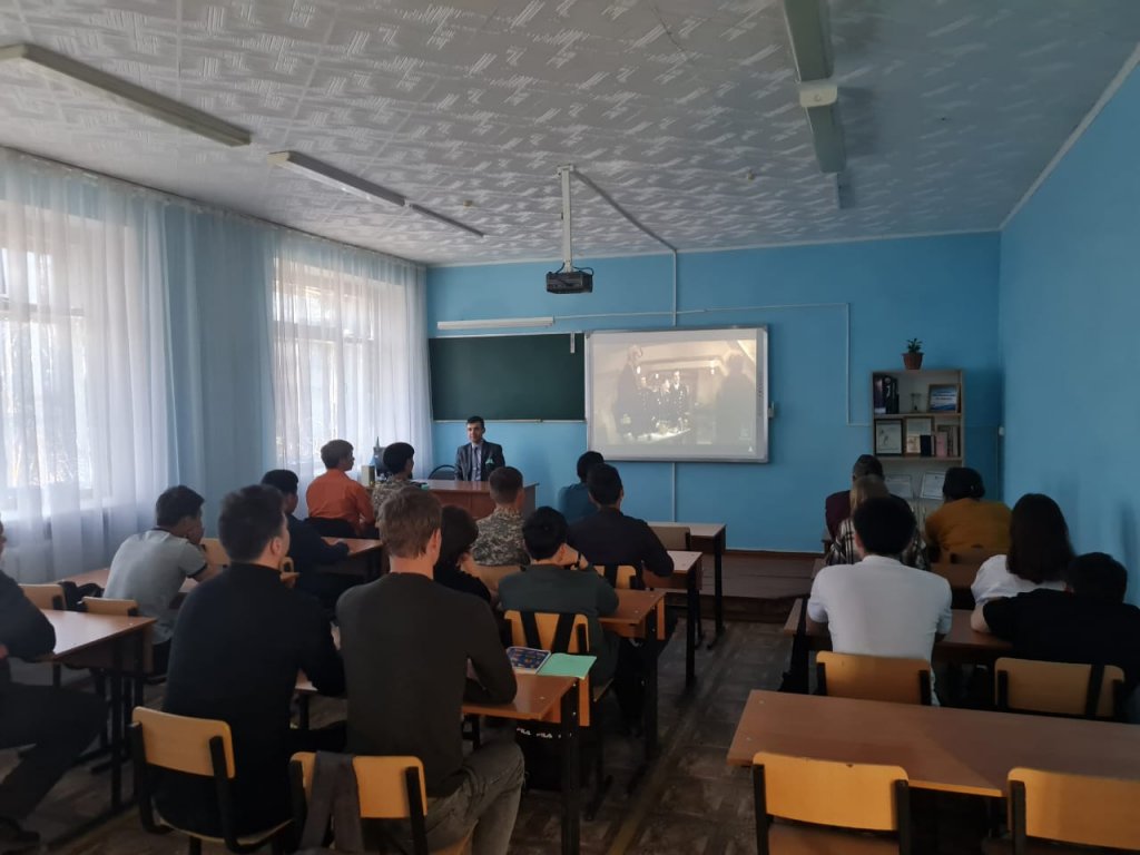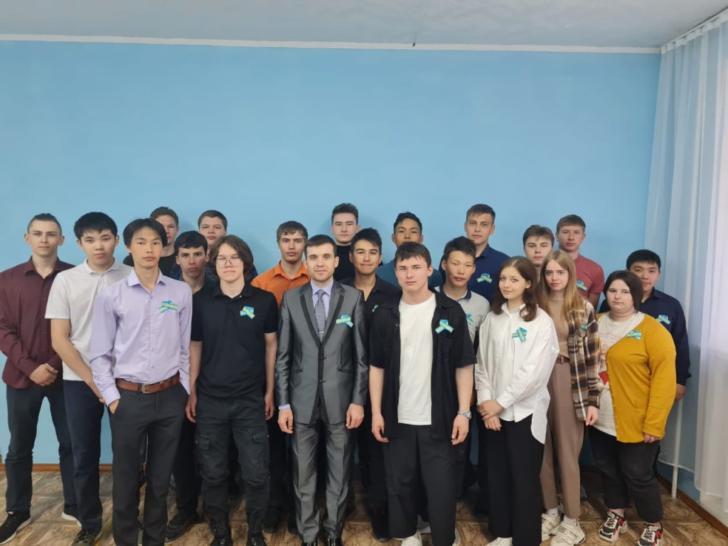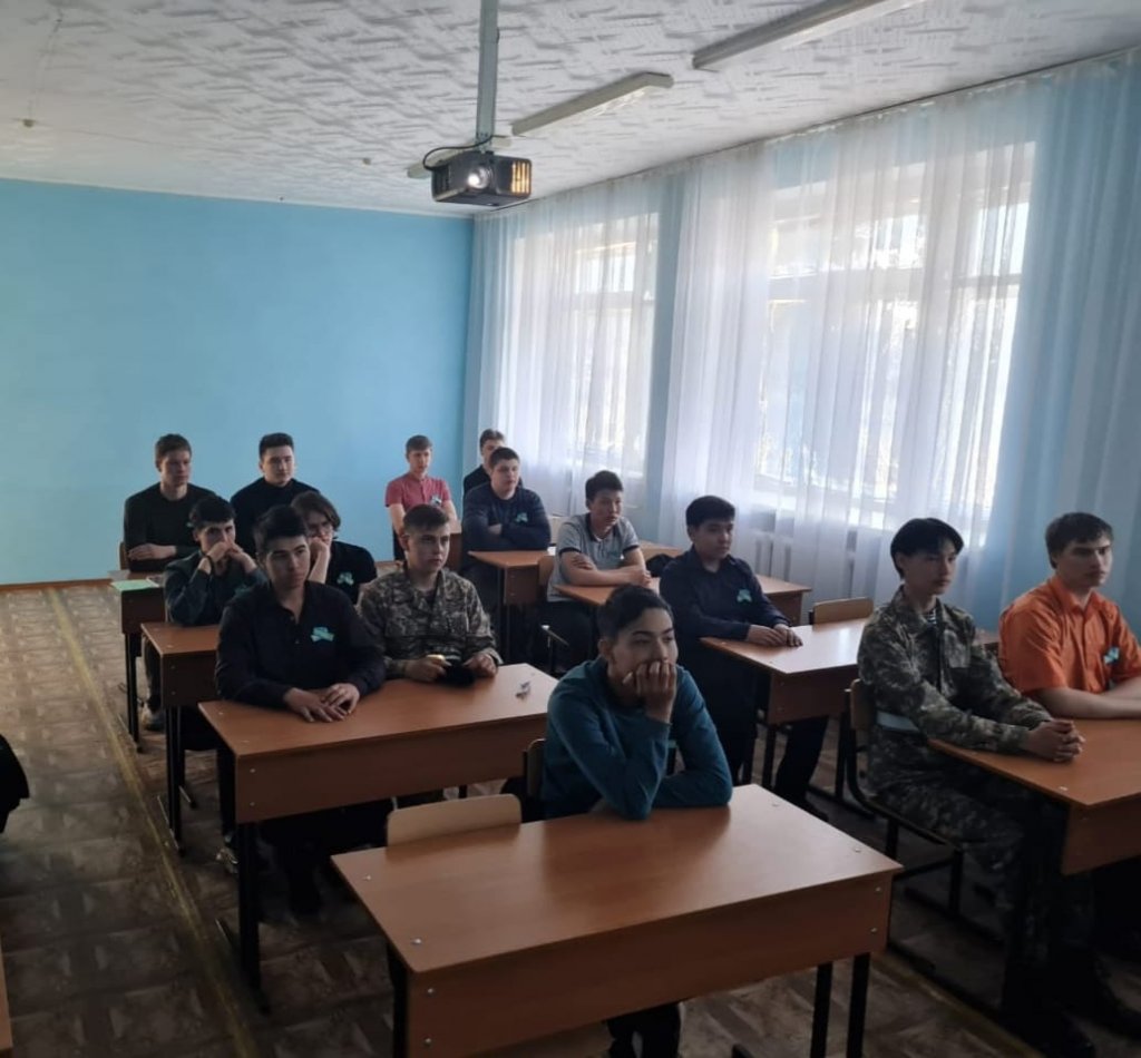4 мамыр күні Э-22 тобында Ұлы Отан соғысындағы Жеңіс күніне арналған «Біз үшін өмірлерін бергендерді есте сақтаймыз және құрметтейміз» тақырыбындағы сыныптан тыс іс-шара өткізілді. Мереке күндері құрметіне балалар әр адам есте сақтап, құрметтеуге тиіс күндерді еске салатын «көгілдір ленталарды» кеуделеріне тағып алды. Өйткені Ұлы Отан соғысы жылдары соғыс қасіреті тимеген бір де бір отбасы болмады. Студенттерге «Капитан счастливой щуки» (1972 жыл) атты фильм көрсетілді. Фильмды көріп болған соң балалар Отан қорғаушы және әрбір ер азаматқа тән қасиеттерді талқылады.