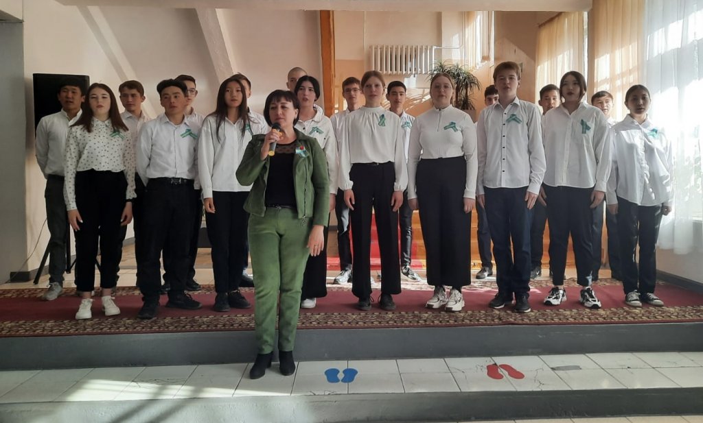 Сапта З.Т.Жусупова мен Т.Р.Ибраевтың орындауында «Отан Ана» патриотттық әні орындалды. Ал салтанатты сап солист Т.А.Лямина мен ЭВМ-4 тобының орындауындағы «Бессмертный полк» әнімен аяқтиалды.