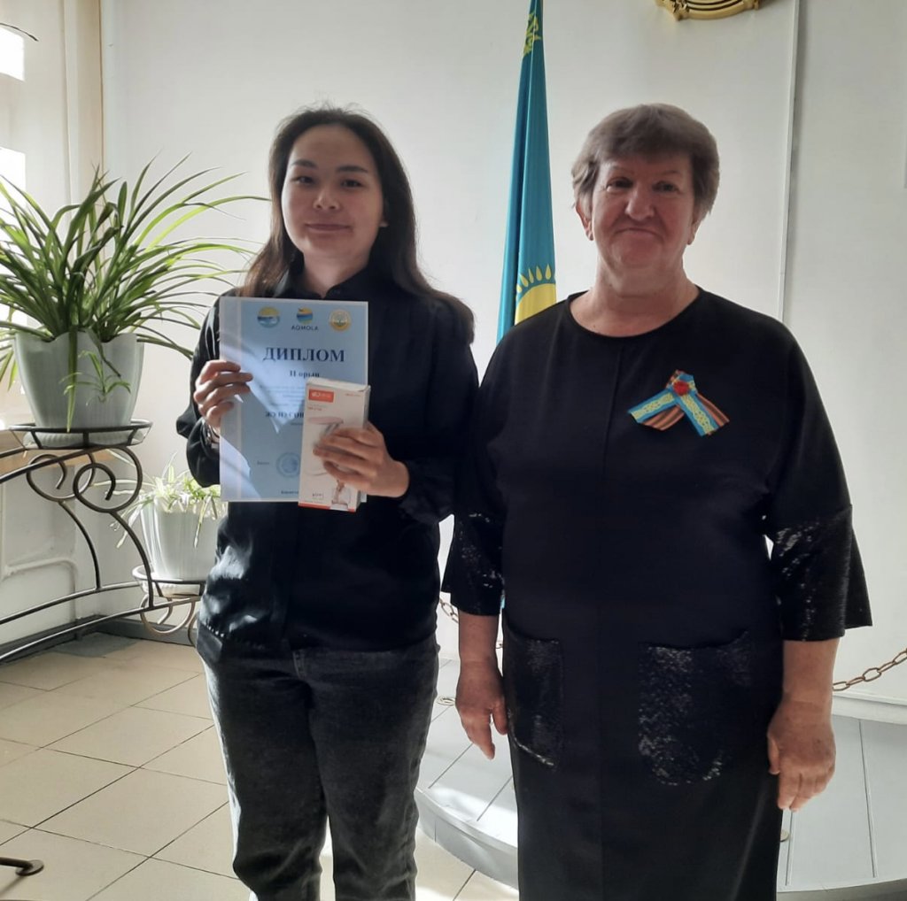 Студенттік өзін-өзі басқару органдары арасында студенттік бастамалар жобаларының облыстық байқауында екінші орын алғаны үшін диплом және алғыс хатпен ПМ-25 тобының білім алушысы Ж.Жунусова және ЖІК инспекторы Г.К Жусупова марапатталды.