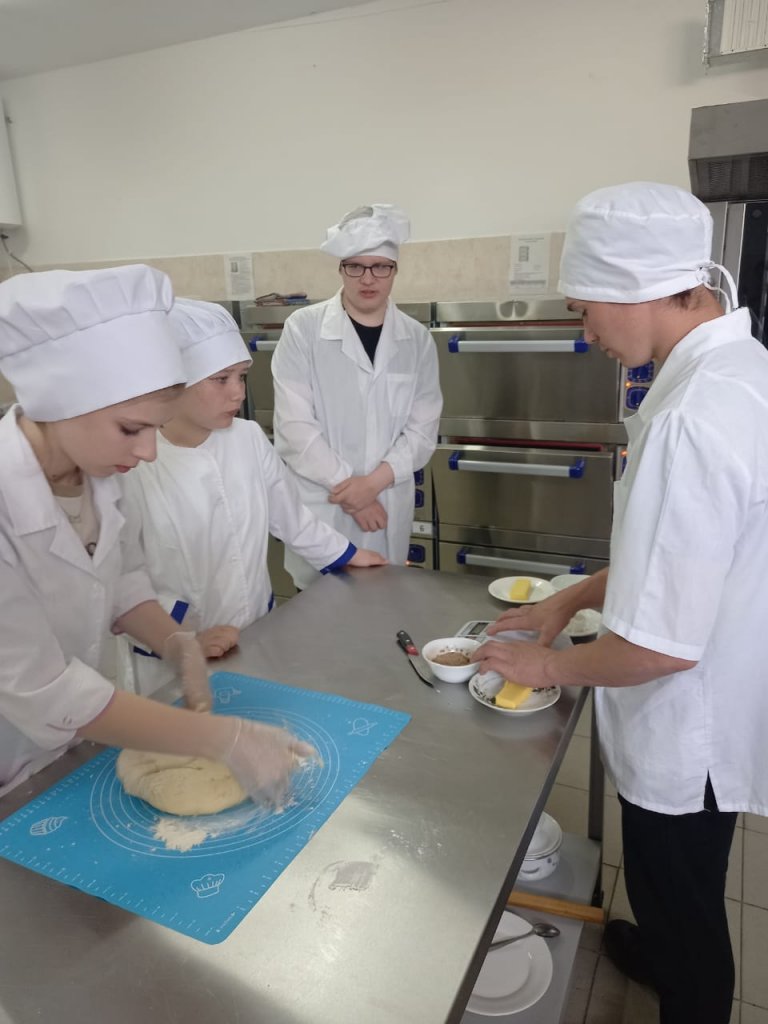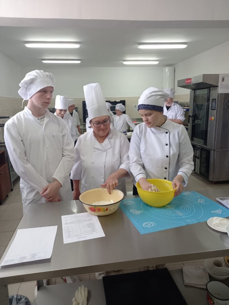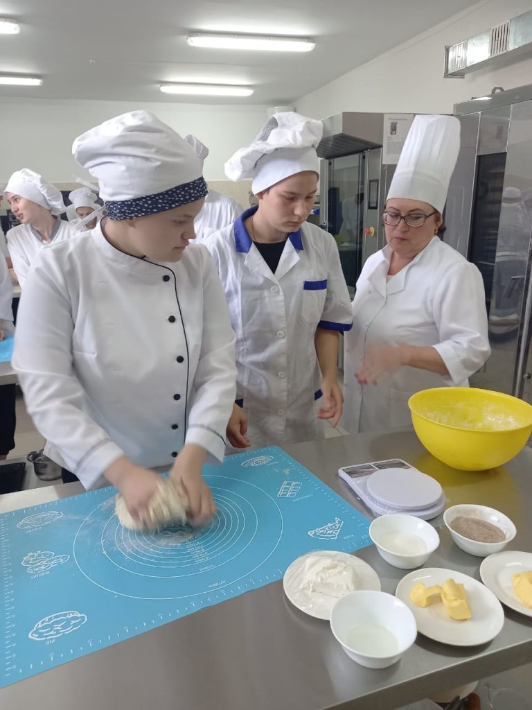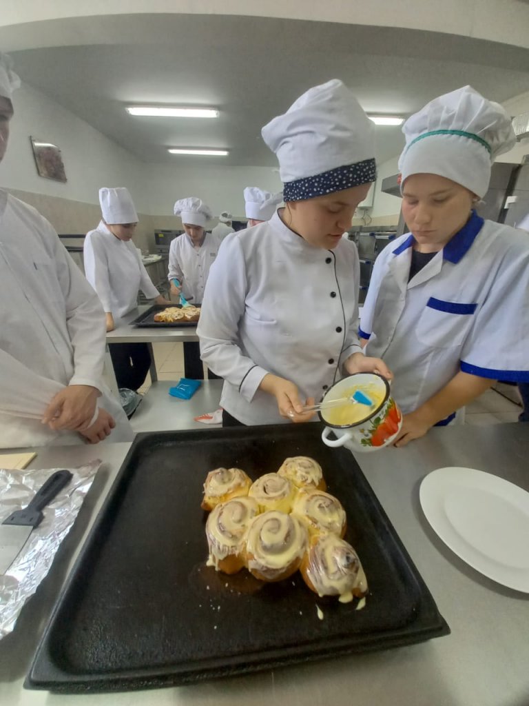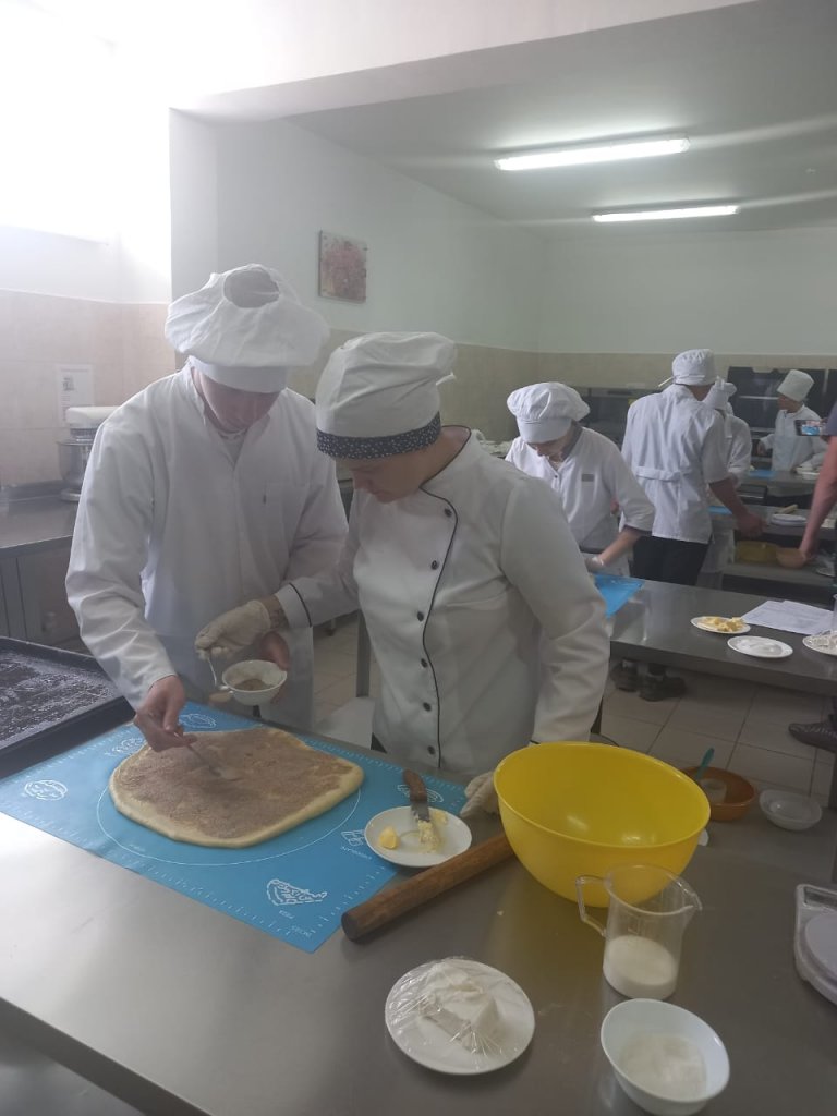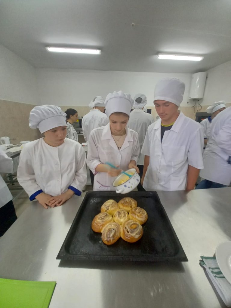 2023 жылғы 30 мамыр күні өндірістік оқыту шебері Л.А.Пшеничникова «Тамақтандыруды ұйымдастыру» мамандығының ТҰ-11 тобында өндірістік оқыту бойынша «Синабон» аспаздық бұйымын жасау» тақырыбында ашық сабақ өткізілді.
