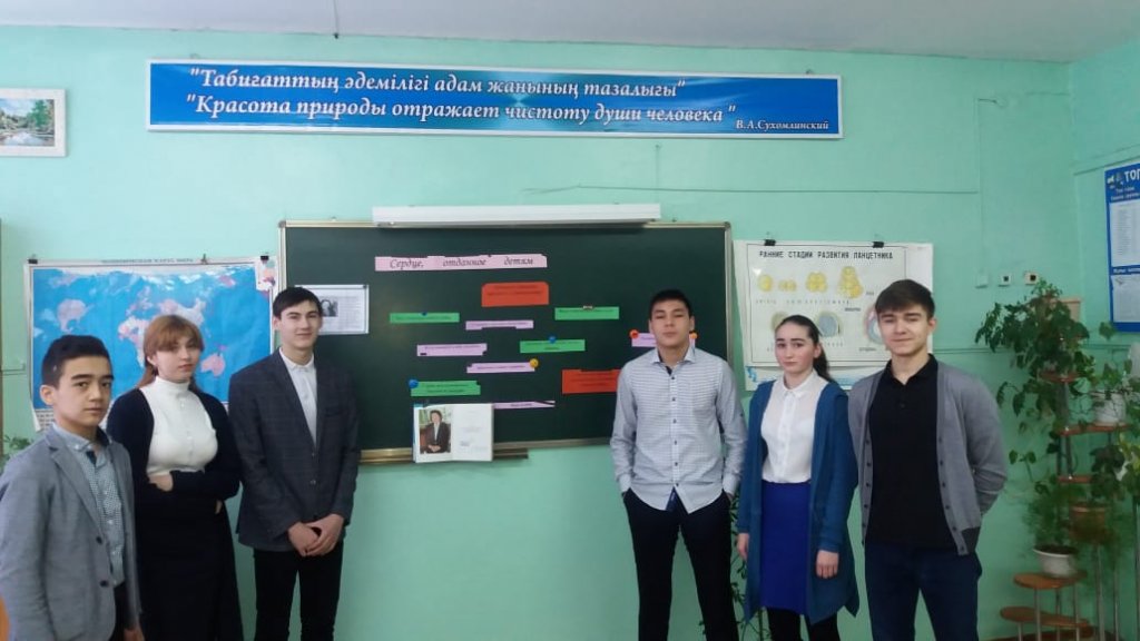 08.02.2020 «Өзін-өзі тану» онкүндігі аясында 7 ақпанда біздің колледжде адамгершілік-рухани тәрбие бағдарламасының авторы С.А.Назарбаеваға арналған «Балаларға берілген жүрек» тақырыбында сынып сағаттары өтті.