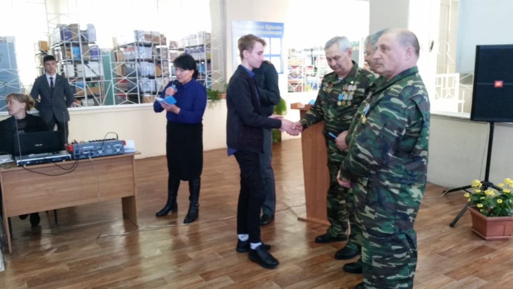Колледжде Ауғанстаннан әскерлердің шығарылған күнін мерекелеу қарсаңында ағылшын тілі мұғалімі Р.И. Ковалева және өндірістік оқыту шебері Кобзар Е.О. «Тірі есте сақтау» атты сыныптан тыс іс-шара ауғандық жауынгерлердің шақыруымен өтті: Жаманбаев Сайдыл Смағұлұлы, Лубицкий Валерий Иванович, Садуов Қанат Кенжебекұлы, сонымен қатар әскери комиссариаттың мүшелері, екінші бөлім бастығы, лейтенант Еламанов Зият Жұмартұлы және инспектор Жанайханов Айжанханов.
